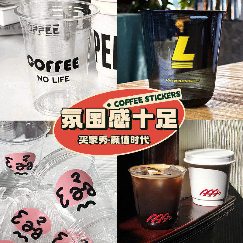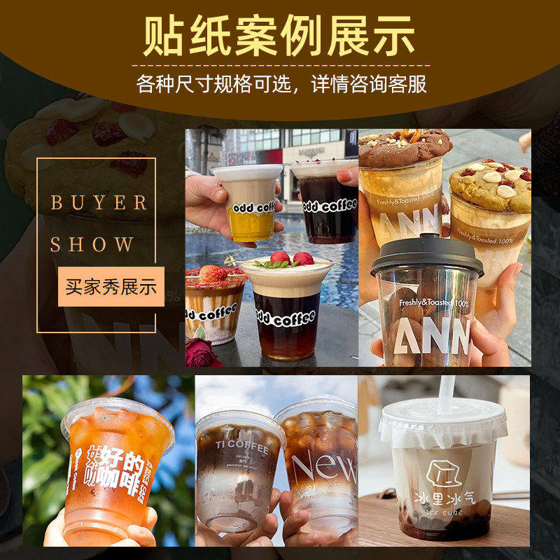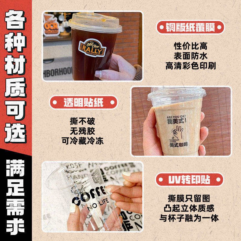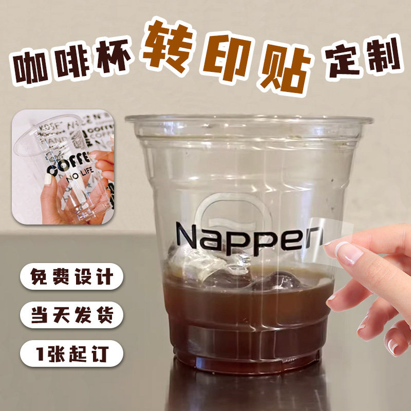 咖啡杯转印贴纸定制冷饮品杯子一次性标签贴画奶茶防水uv水晶标贴