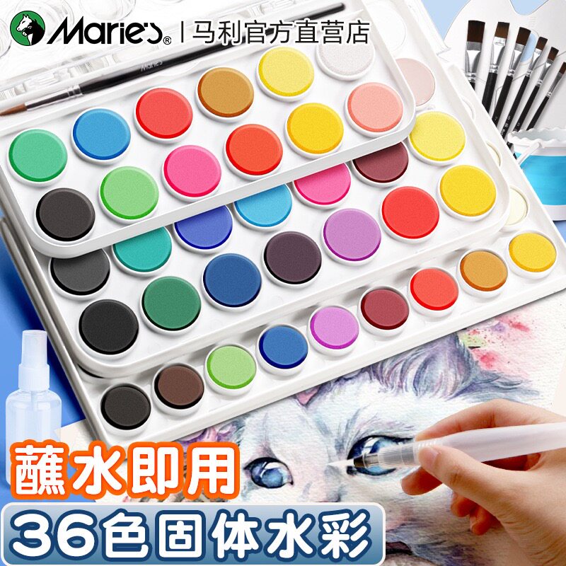 正品马利固体水彩颜料水彩画套装全套美术生专用画画颜料粉饼可水洗套装全套12色36色画画颜料儿童学生初学者