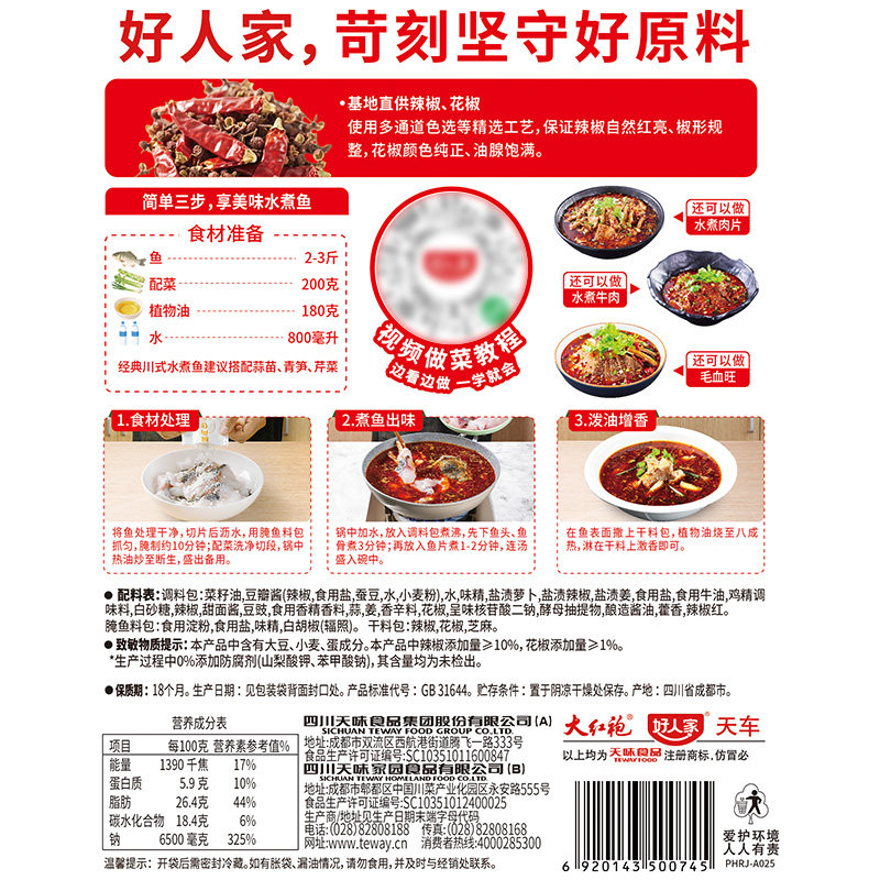好人家水煮鱼调料包198g麻辣水煮鱼底料包做鱼酱料包酸菜鱼调料