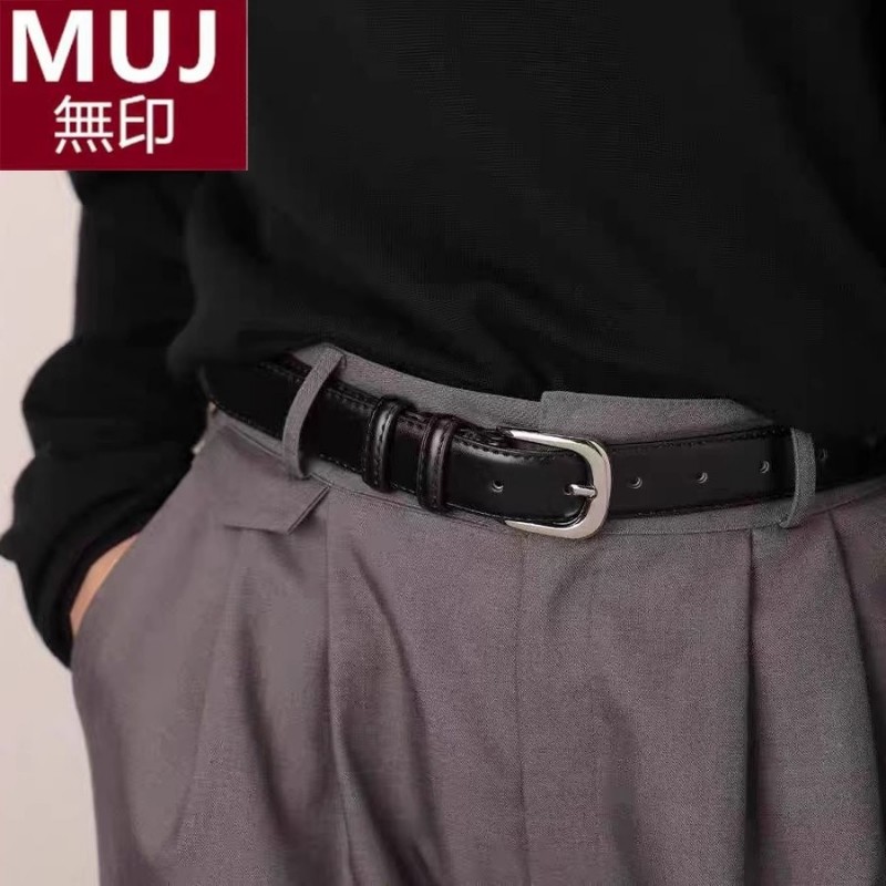 无印muj真皮皮带女士简约中性复古牛皮小众通勤百搭休闲黑色腰带