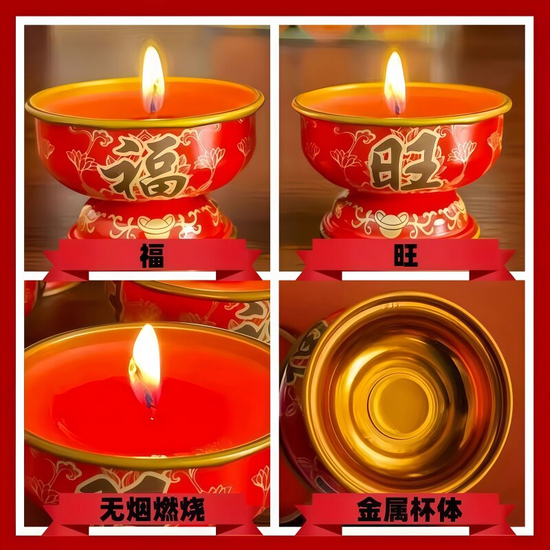 福旺灯蜡烛过年家用酥油灯金属底座佛灯长明灯无烟无味红色环保