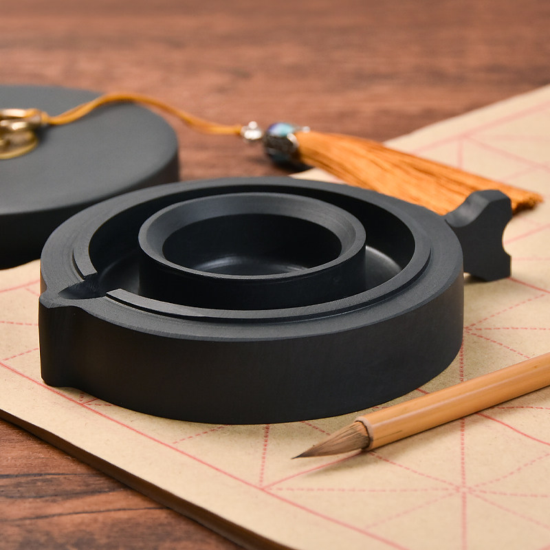 火锅砚台带盖书法专用小学生三年级多功能墨盒墨砚水碟原石天然防蒸发密封好初学者练习写毛笔字磨墨砚池墨池