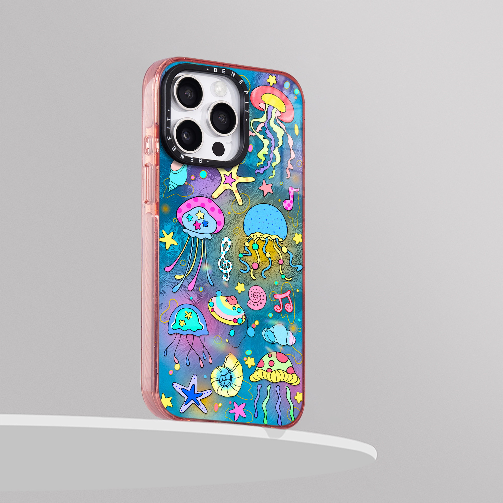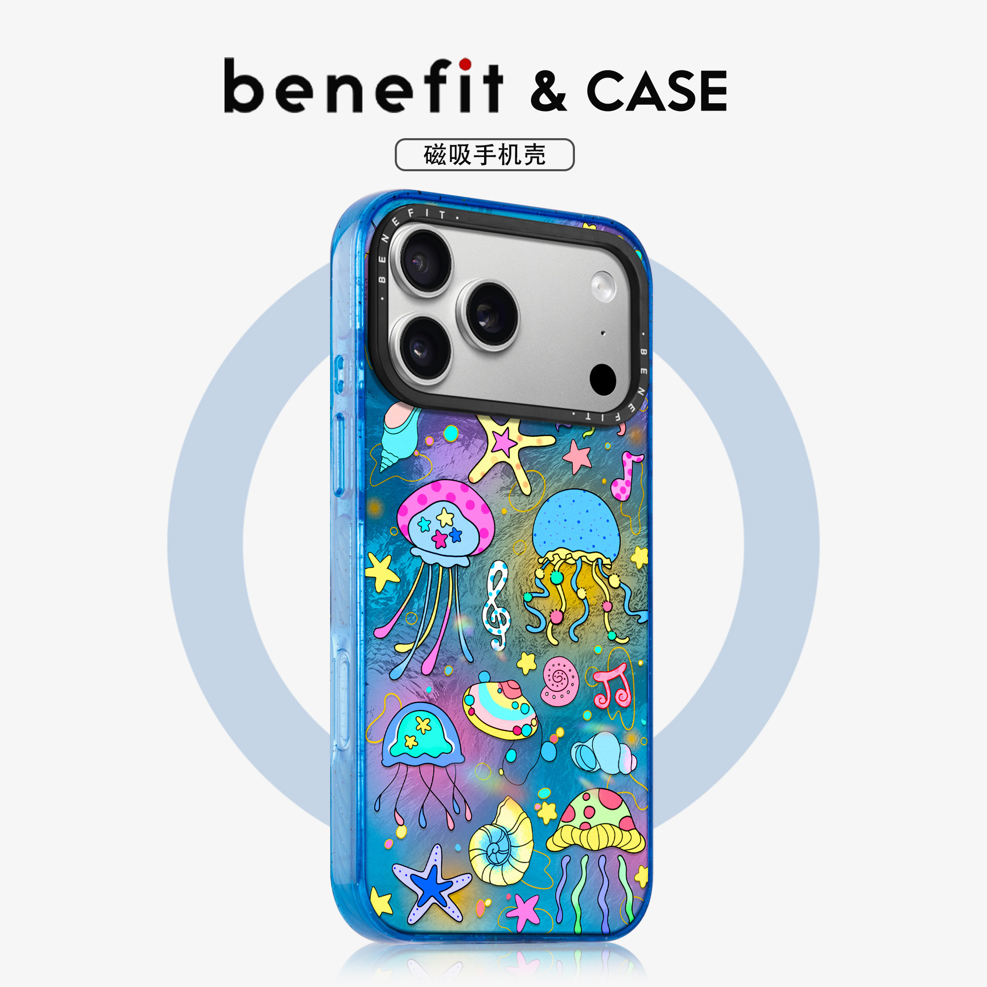 benefit海底梦幻彩色水母17适用于iphone16promax苹果15PRO晶盾磁吸手机壳13新款14套12冰川纹防摔彩色边框