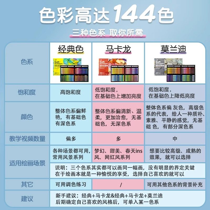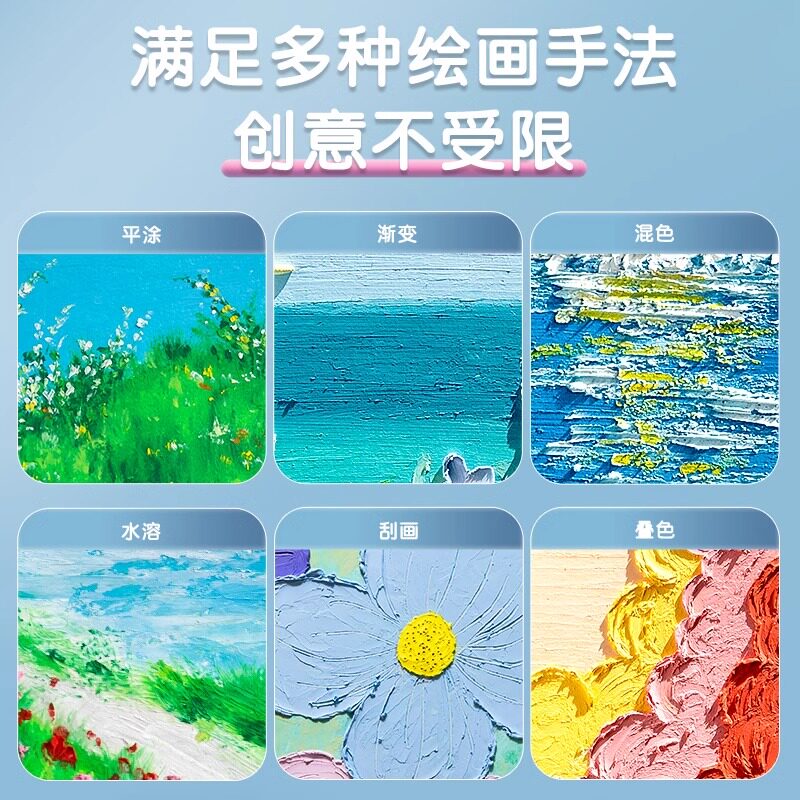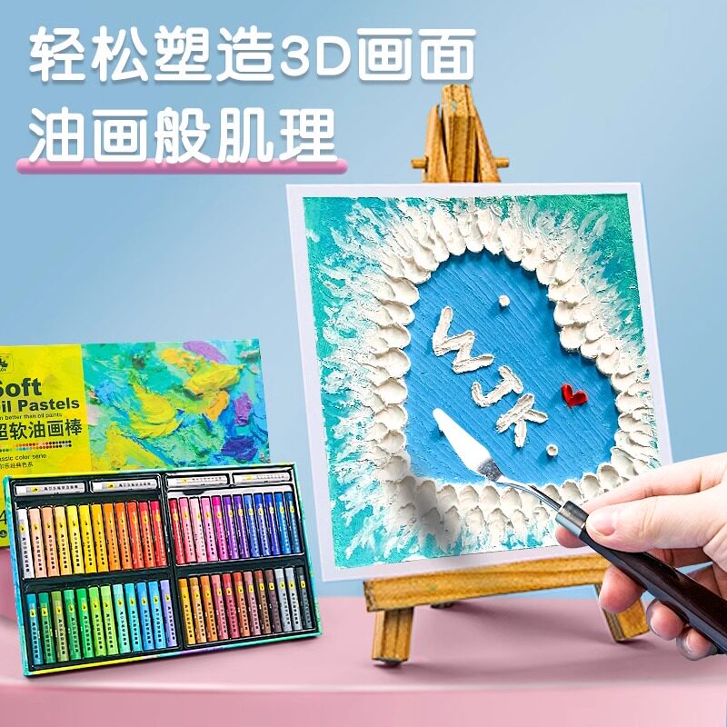 千汇超软油画棒刮刀软性重彩套装软性油性水溶儿童小学生蜡笔36色油画棒纸48马卡龙色专业美术生绘画白色套装