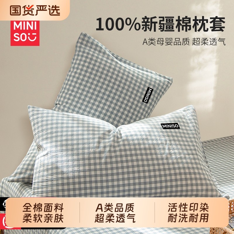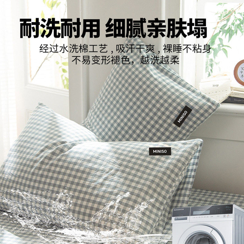 名创优品全棉色织水洗棉枕套一对装纯棉枕头套单个内胆套2025新款