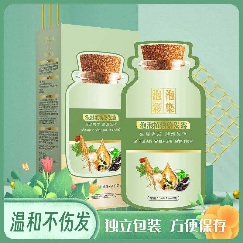 泡泡染果油染发剂自己在家染发膏一洗黑遮白发纯植物萃天然无刺激