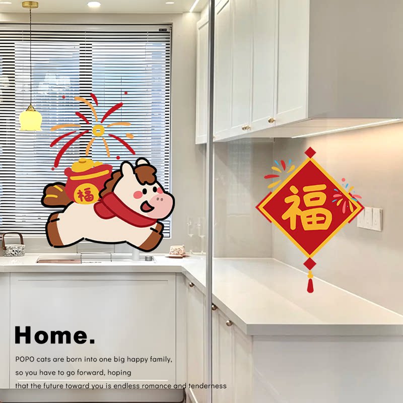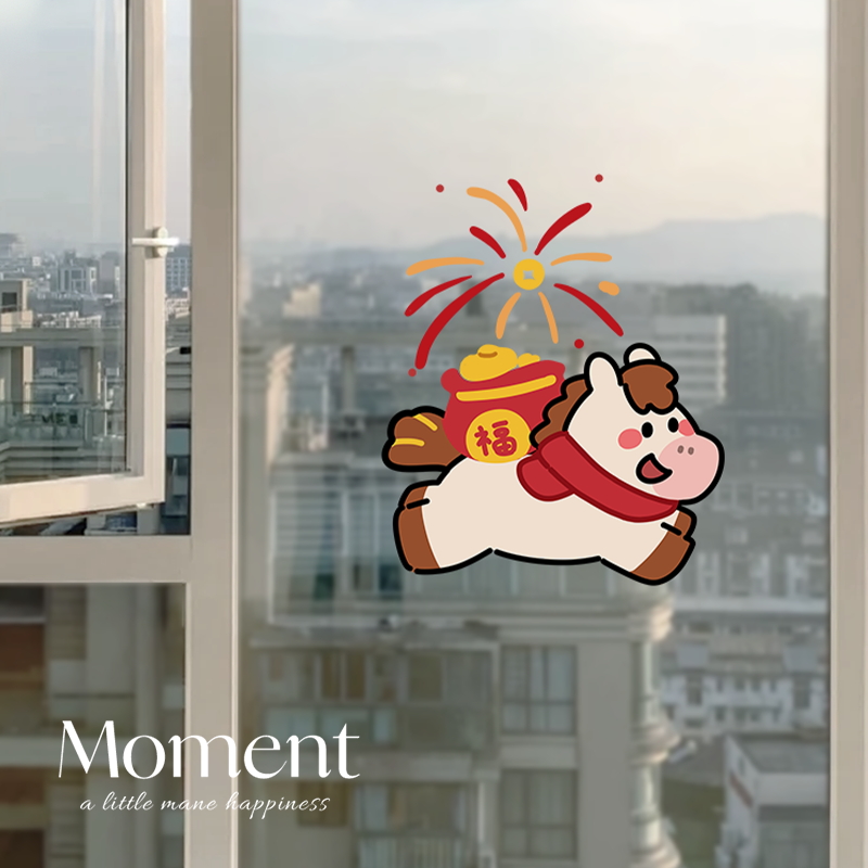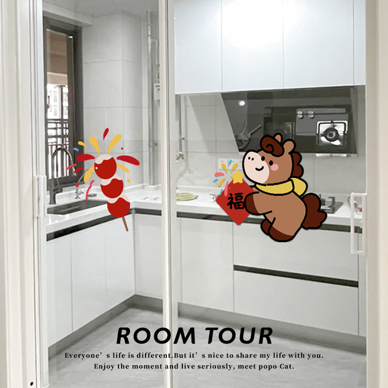 小马送福新春厨房推拉门贴纸新年玻璃贴装饰马年窗花静电贴2026