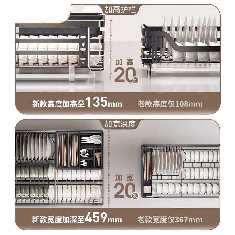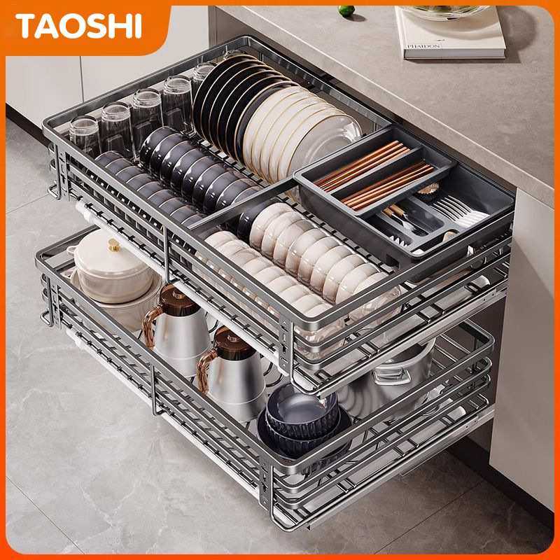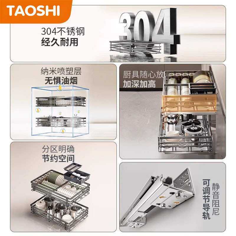 陶市拉篮厨房橱柜碗篮304不锈钢双层抽屉式收纳碗碟架柜厨柜拉蓝