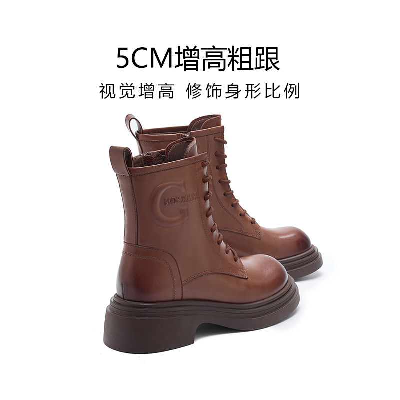 真皮版~棕色马丁靴女2025秋冬新款厚底增高短靴小个子英伦风靴子