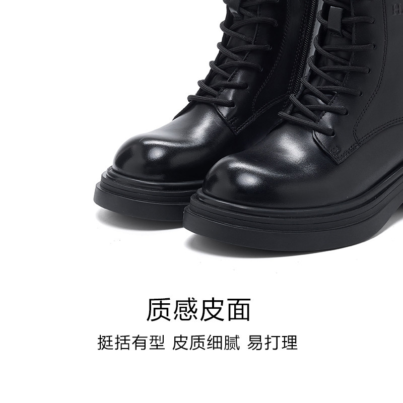 天美意粗跟厚底增高加绒英伦马丁靴女鞋子休闲短靴皮靴2025冬新款