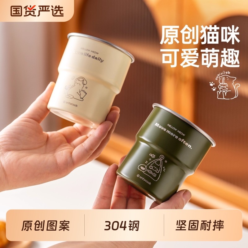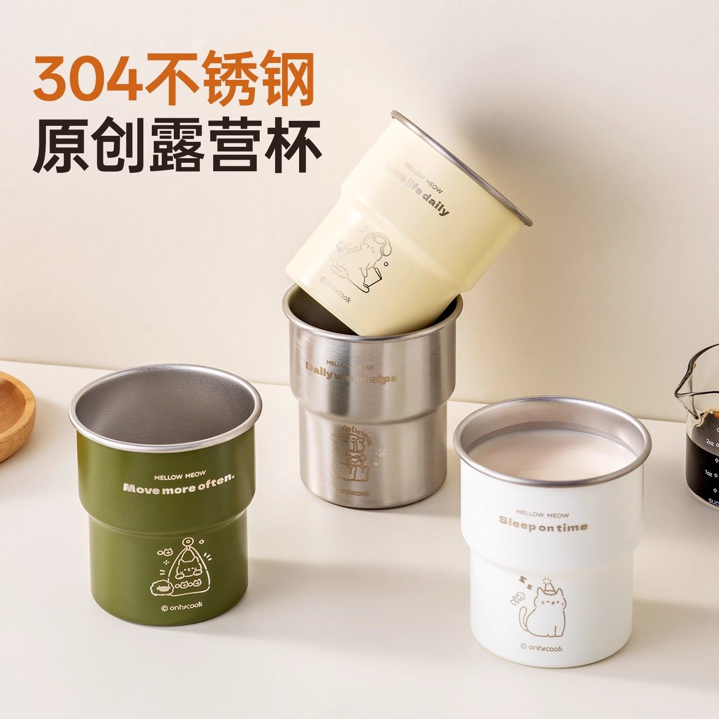 onlycook露营杯子304不锈钢户外便携式水杯马克杯咖啡杯办公室