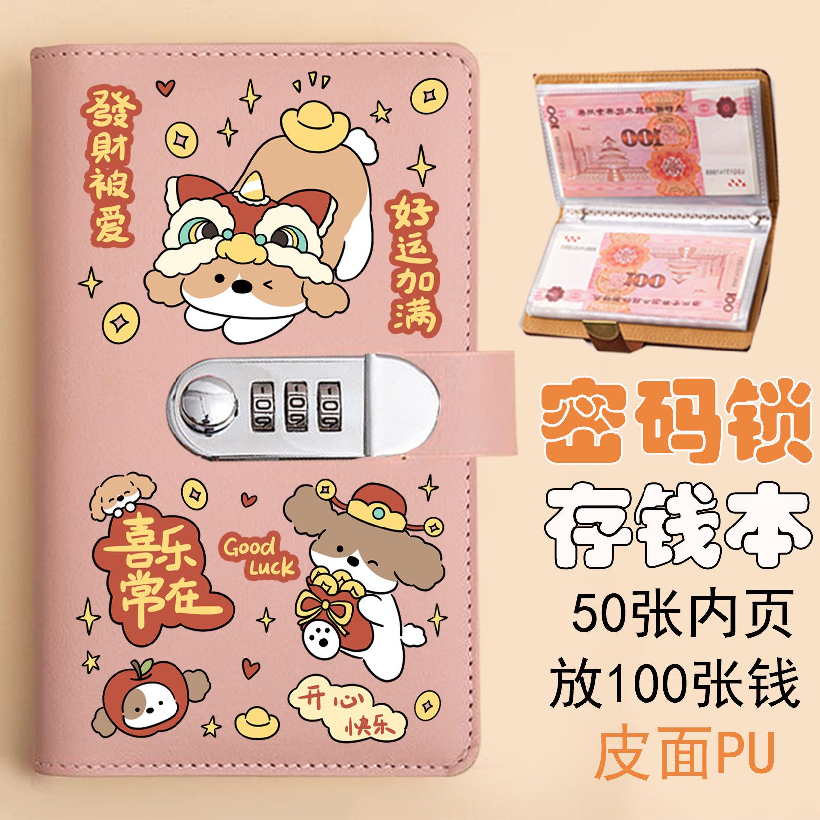 美乐蒂存钱本小学生带锁现金收账本家庭零钱收纳袋攒钱本卡袋账册