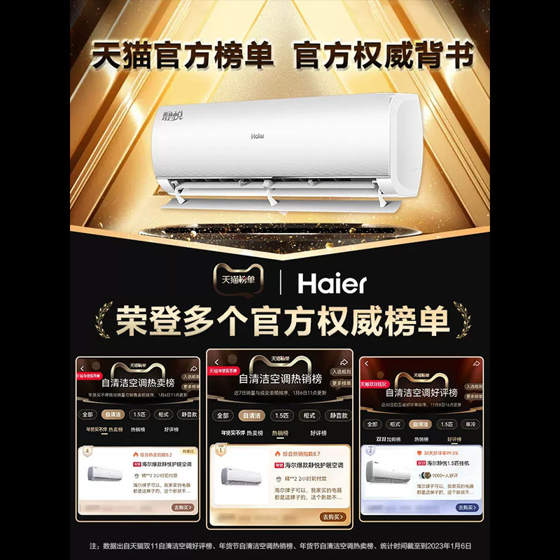 海尔小红花空调新一级能效1.5匹变频冷暖家用劲爽挂机35LCA