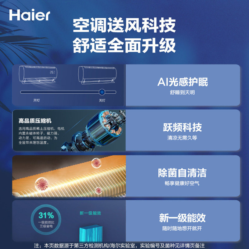 海尔空调1.5匹1.5P变频冷暖家用一级能效睡眠卧室挂机空调35KMC