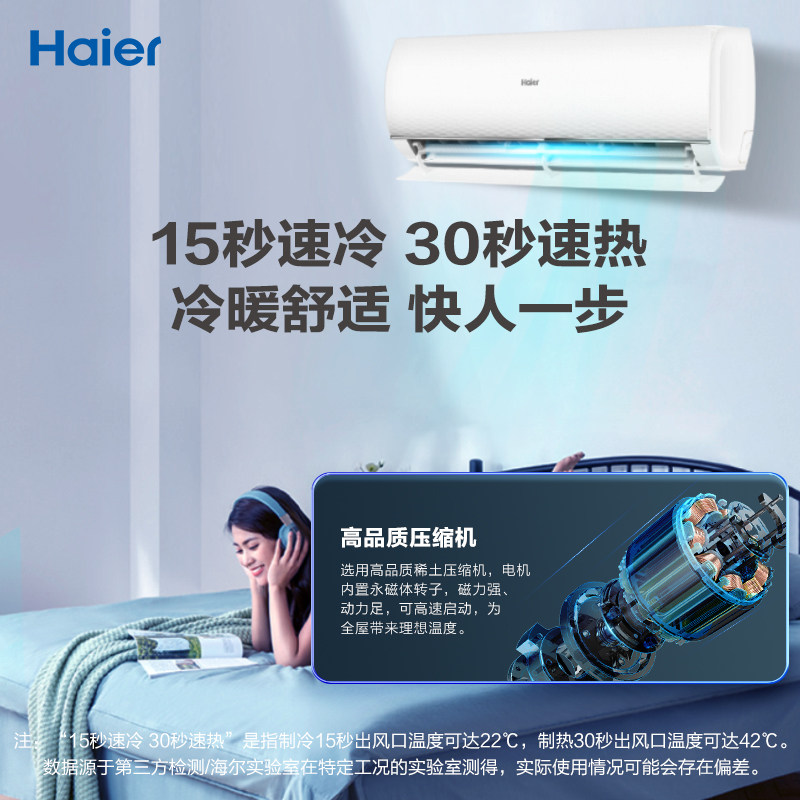 [国补20%]海尔空调1.5匹家用一级能效变频冷暖卧室统帅挂机节能