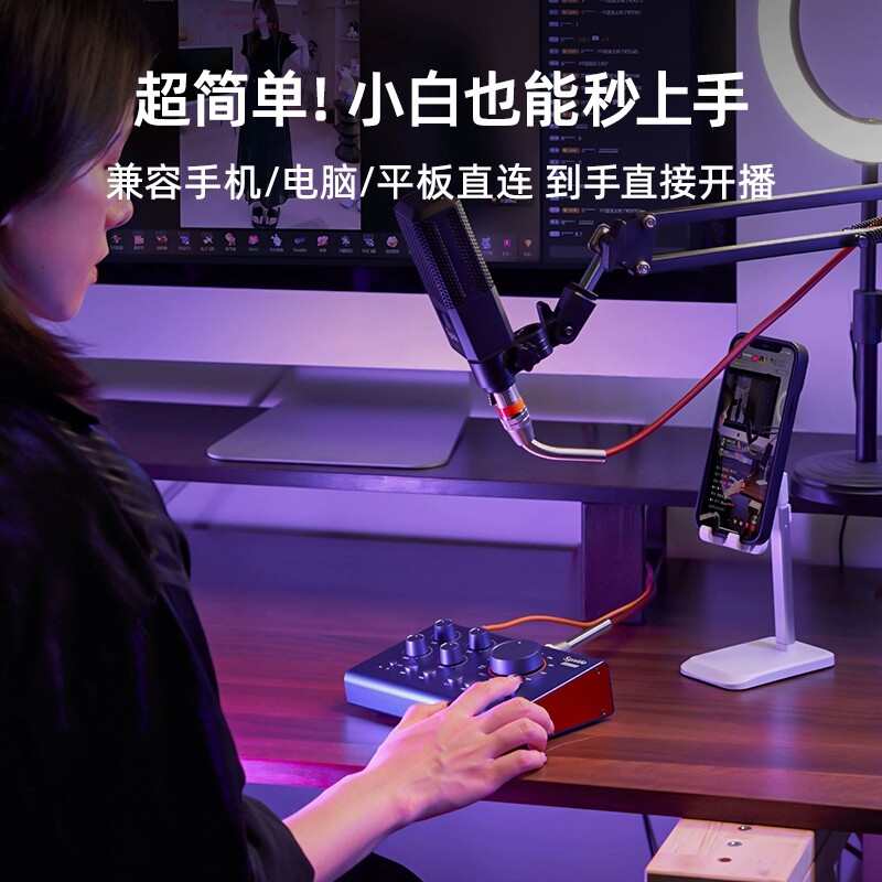 Synido森林岛外置声卡专业主播手机电脑直播降噪专用k歌唱歌录歌
