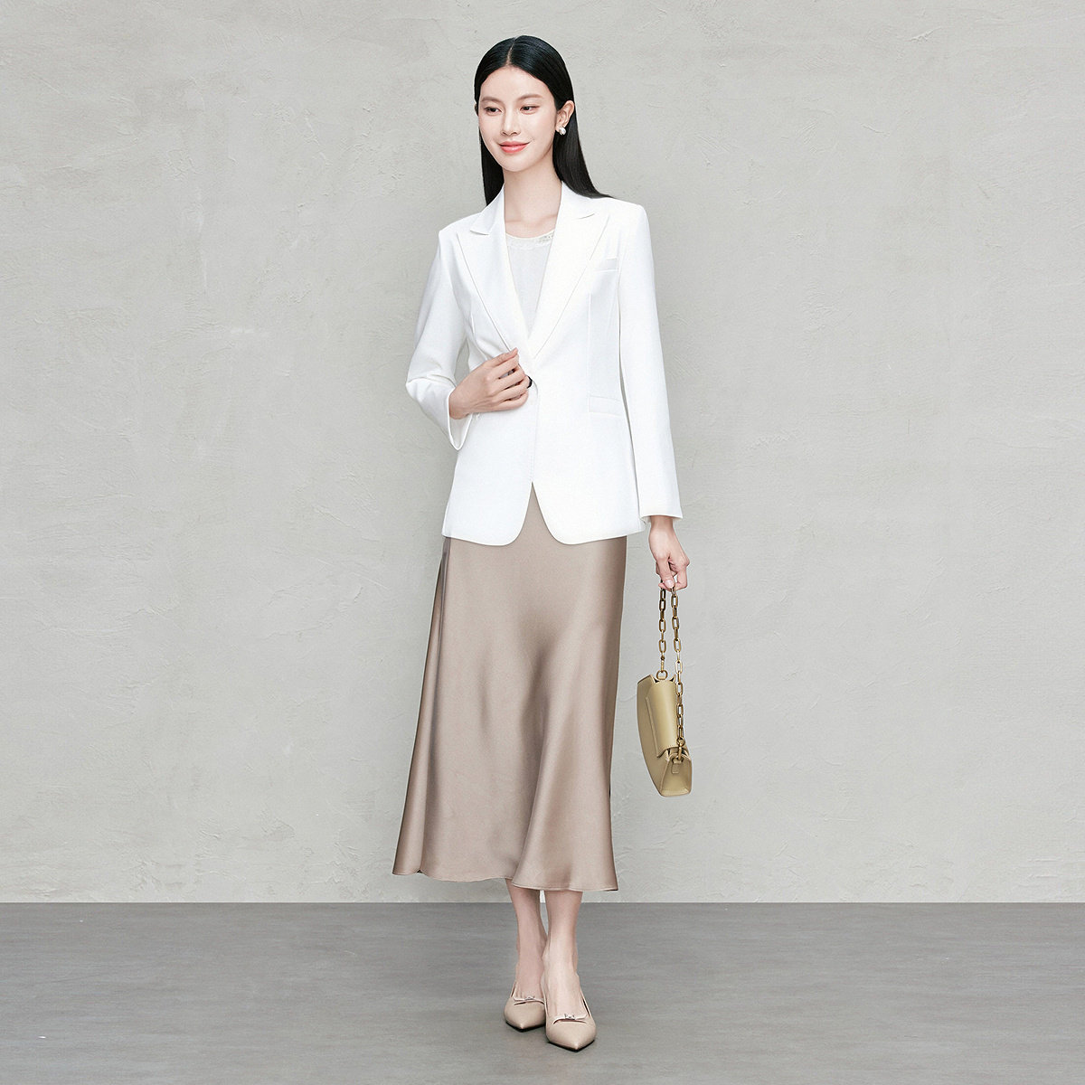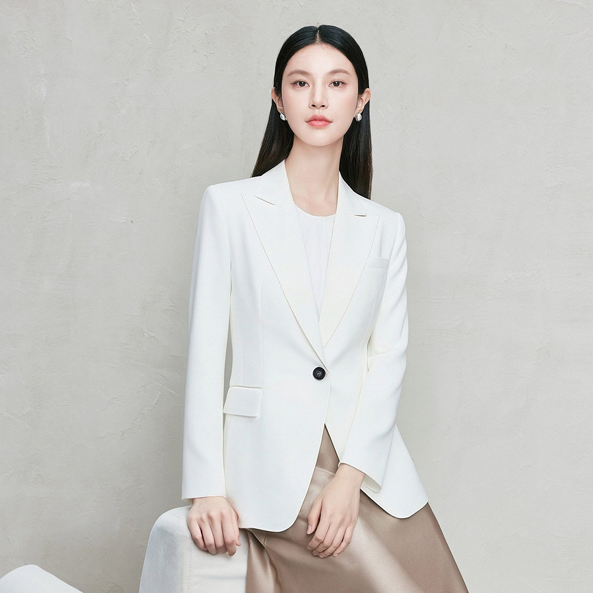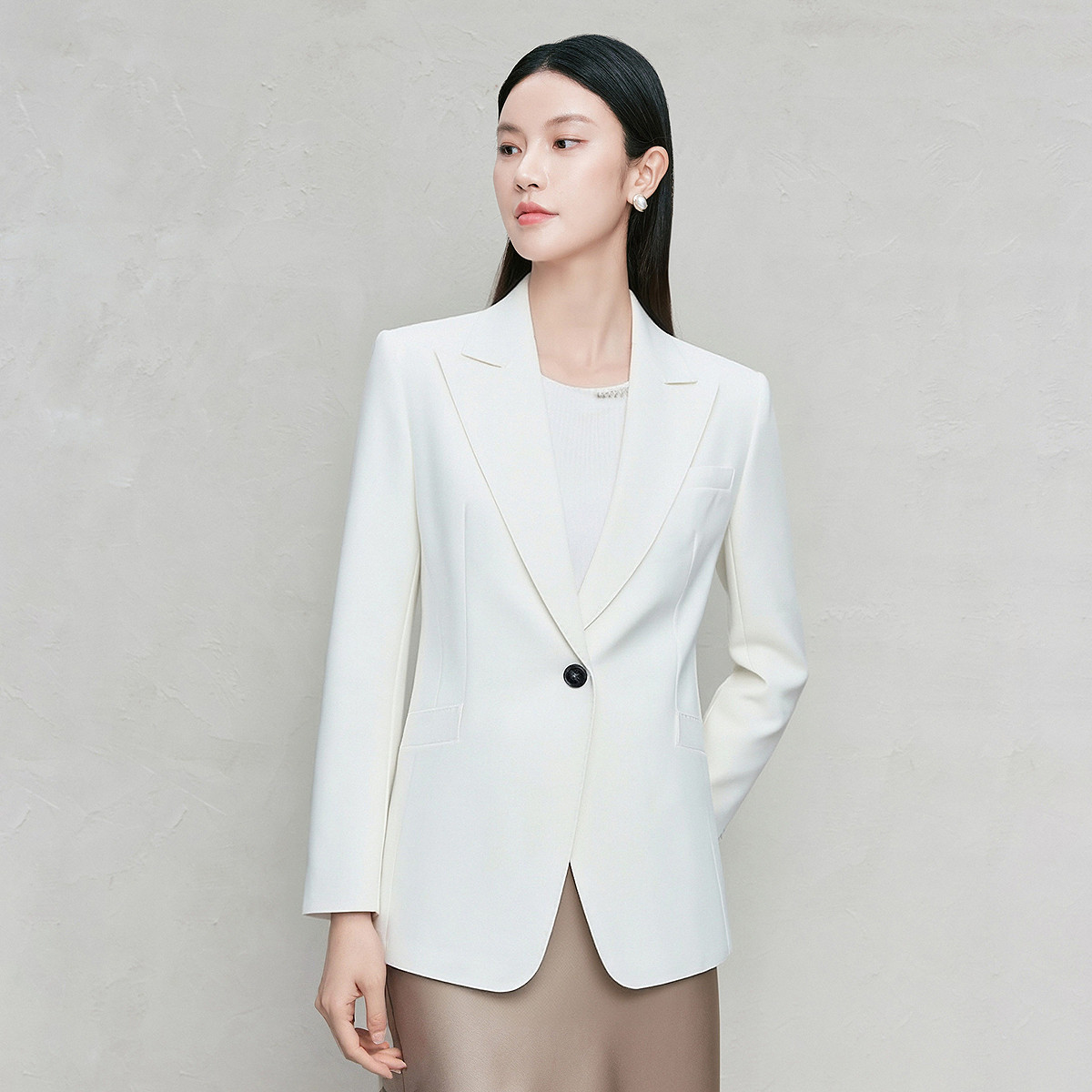 FINITY菲妮迪西装2026年春季新款简约白色职业通勤优雅修身外套女
