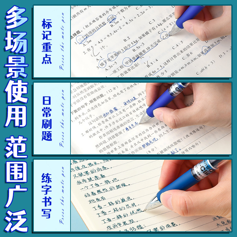 名马按动中性笔水笔碳素黑签字笔学生用水性蓝笔商务办公考试刷题老师专用红笔圆珠笔墨蓝笔芯医生处方笔黑笔