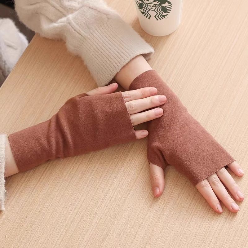 自发热德绒半指手套女秋冬季保暖防寒学生写字办公打字漏指手套