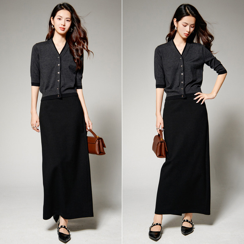 晚白2025年秋冬新款含羊毛V领上衣优雅简约大方百搭针织开衫女