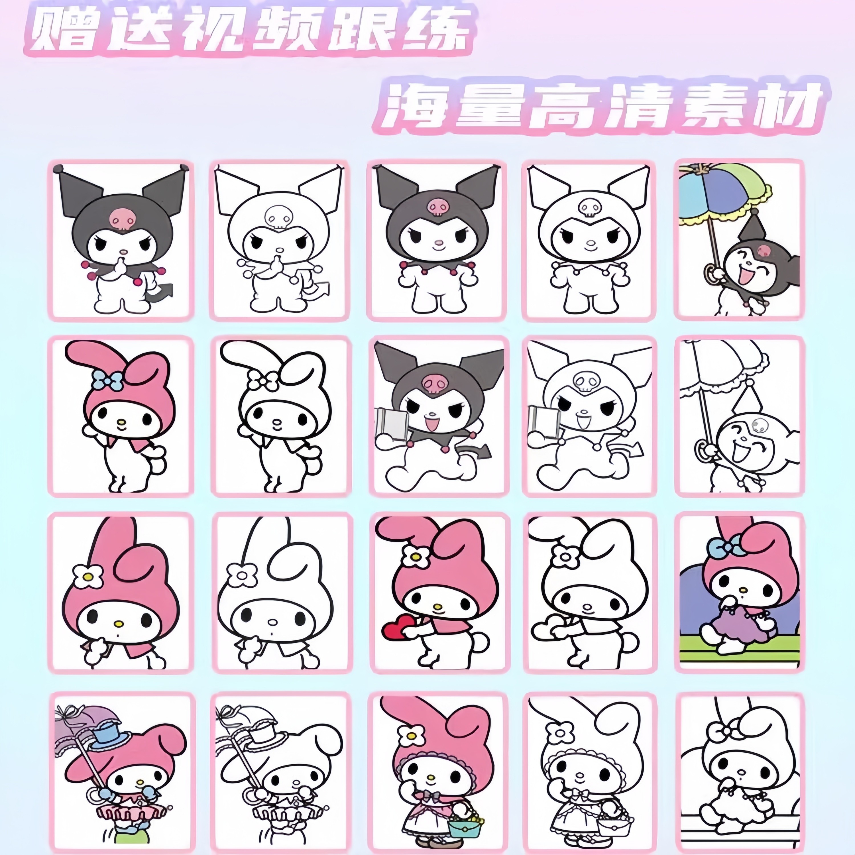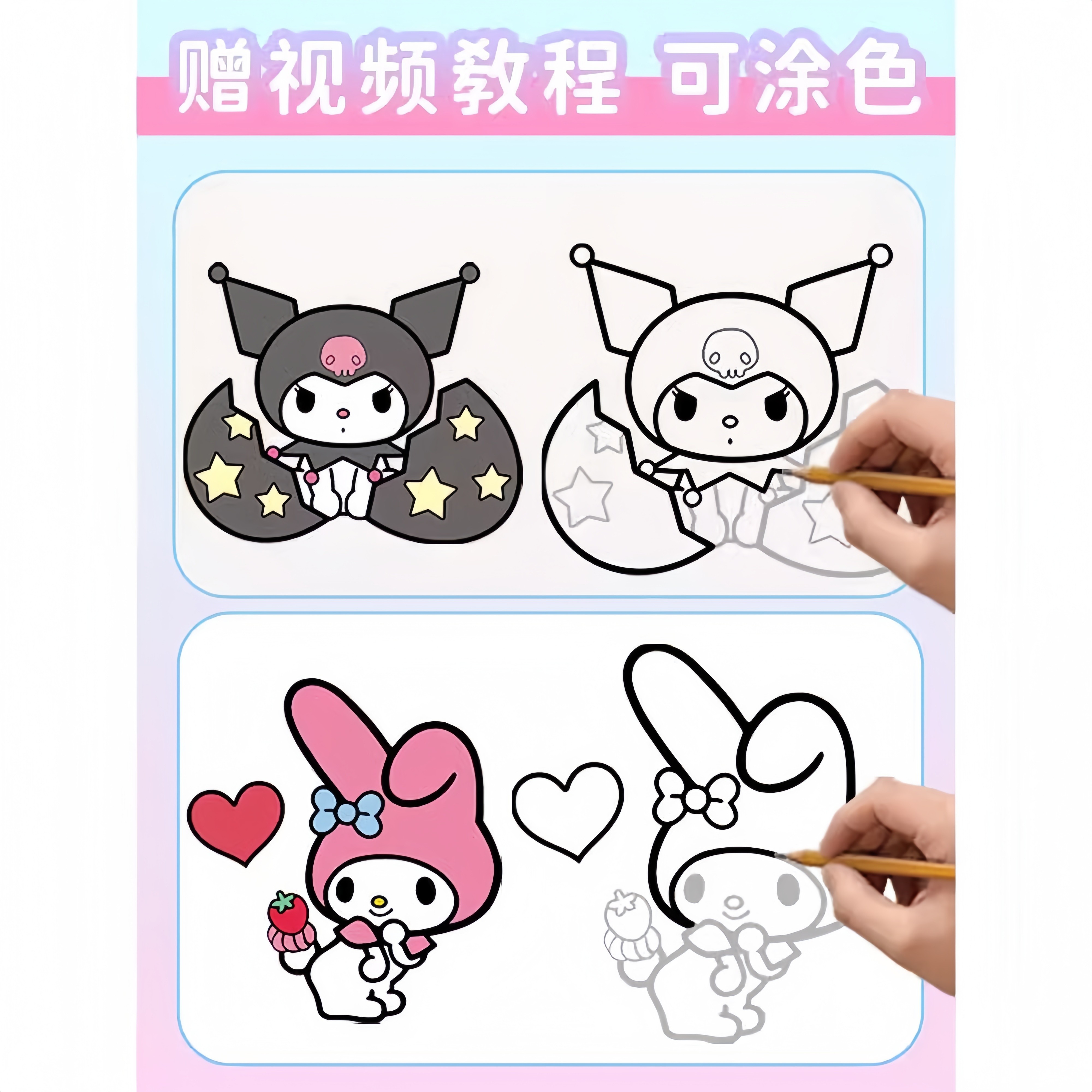 库洛紫玉桂狗画画本儿童描摹涂色临摹本小学生卡通动漫线稿hellokitty手绘美乐蒂画册基础简笔人门图画幼儿园