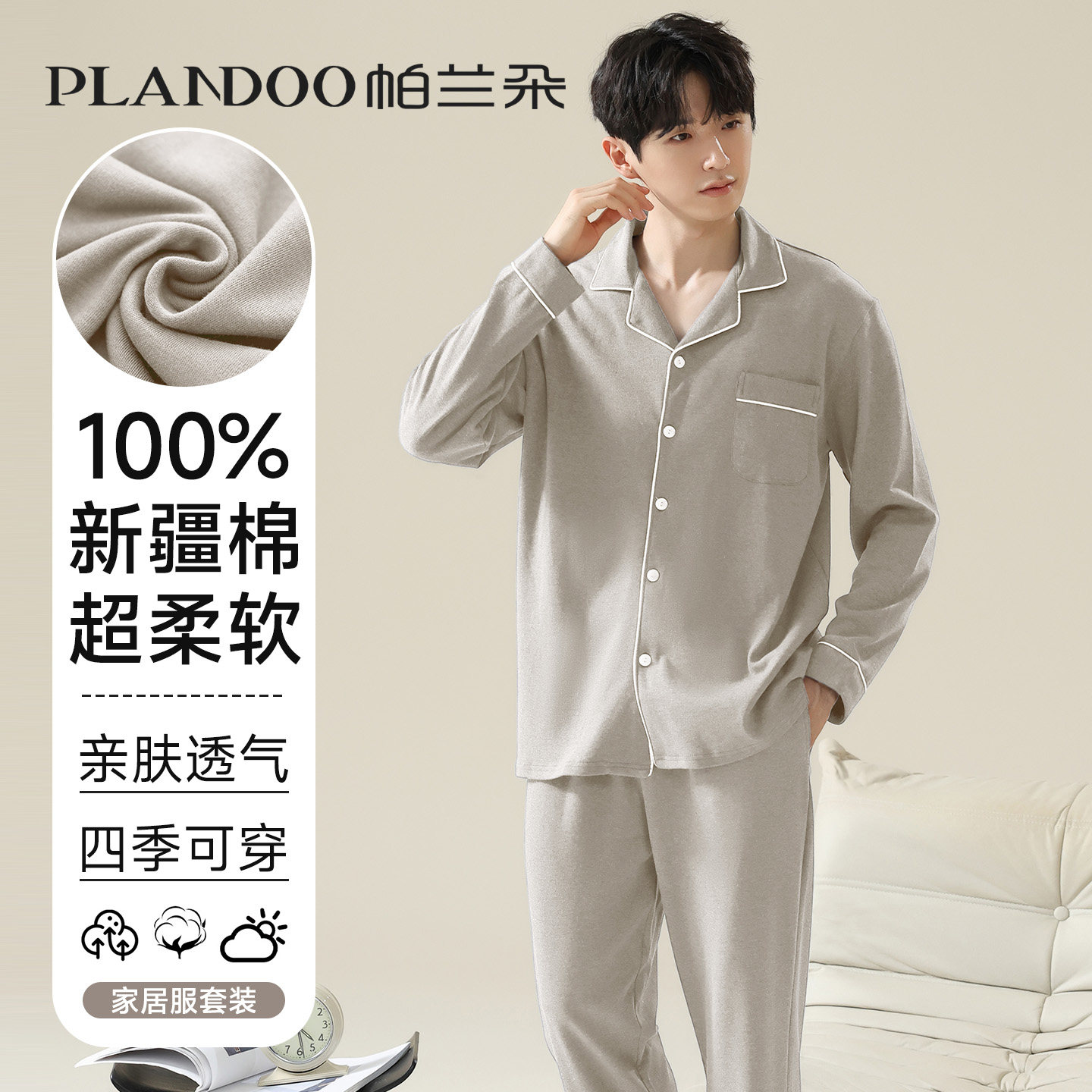 全棉简约休闲高级感可外穿长袖家居服套装