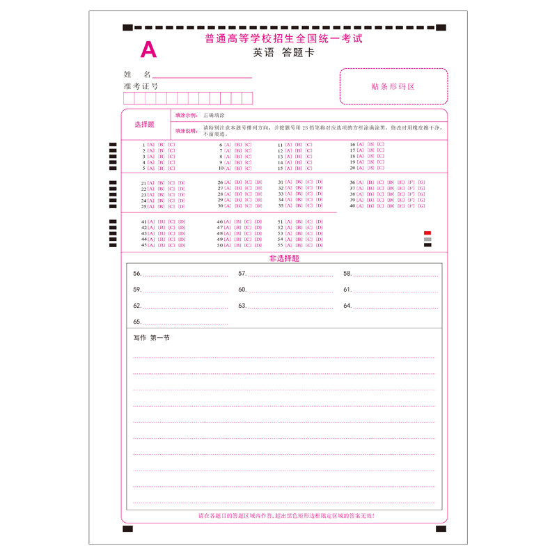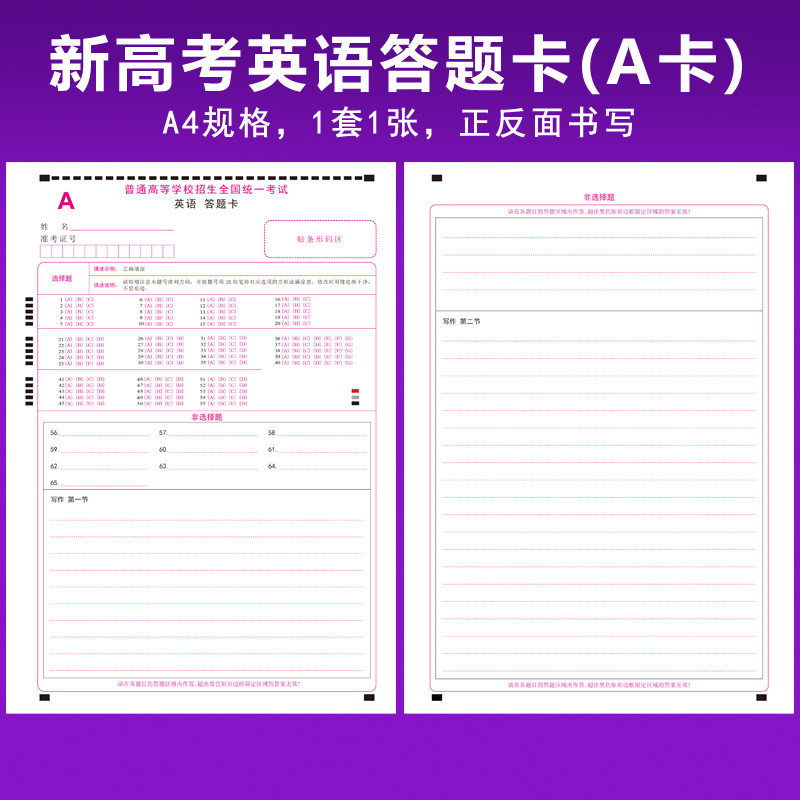 2026新版高考英语答题卡全国卷AB卷英语数学语文英语作文答题卡纸