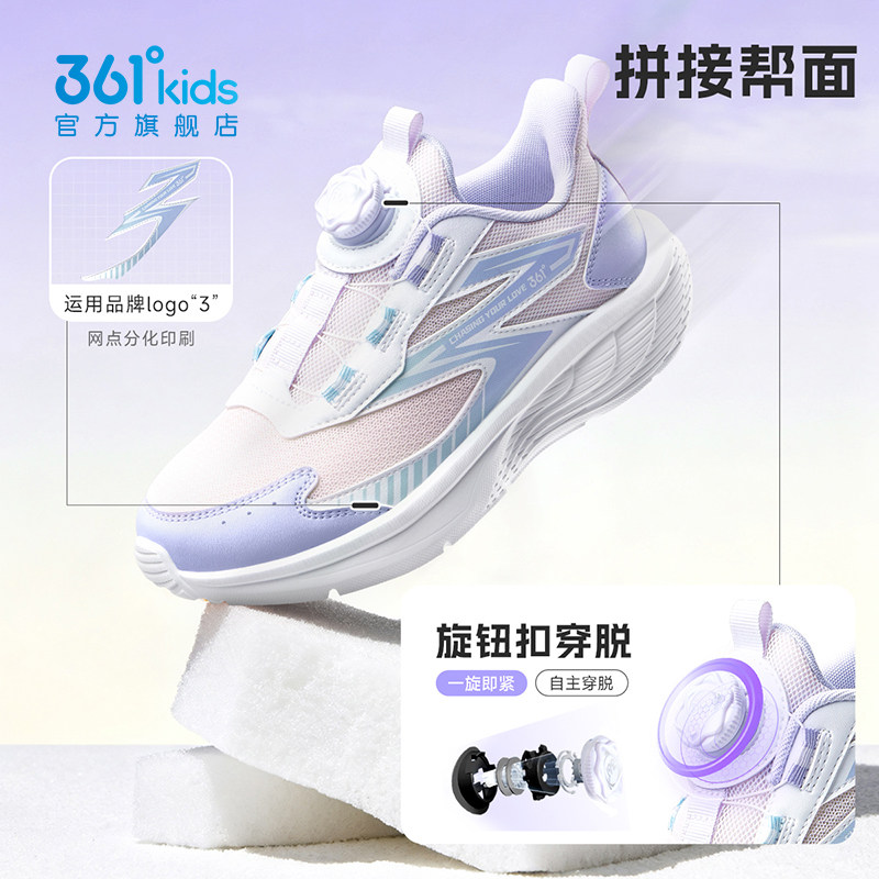 361度童鞋女童运动鞋儿童跑步鞋春季新款男童鞋子轻便女孩纽扣鞋