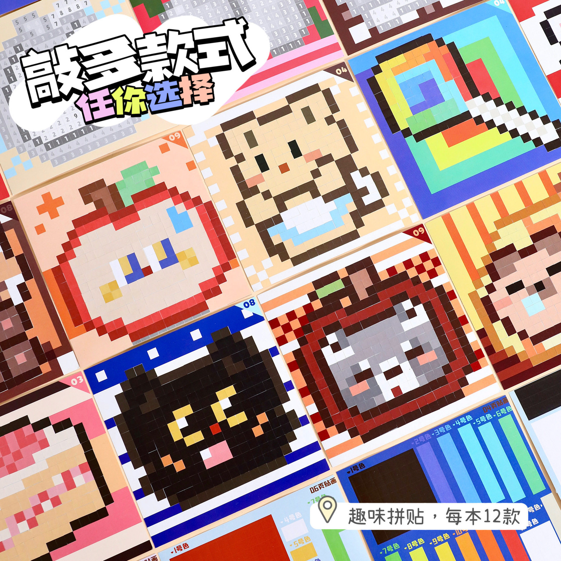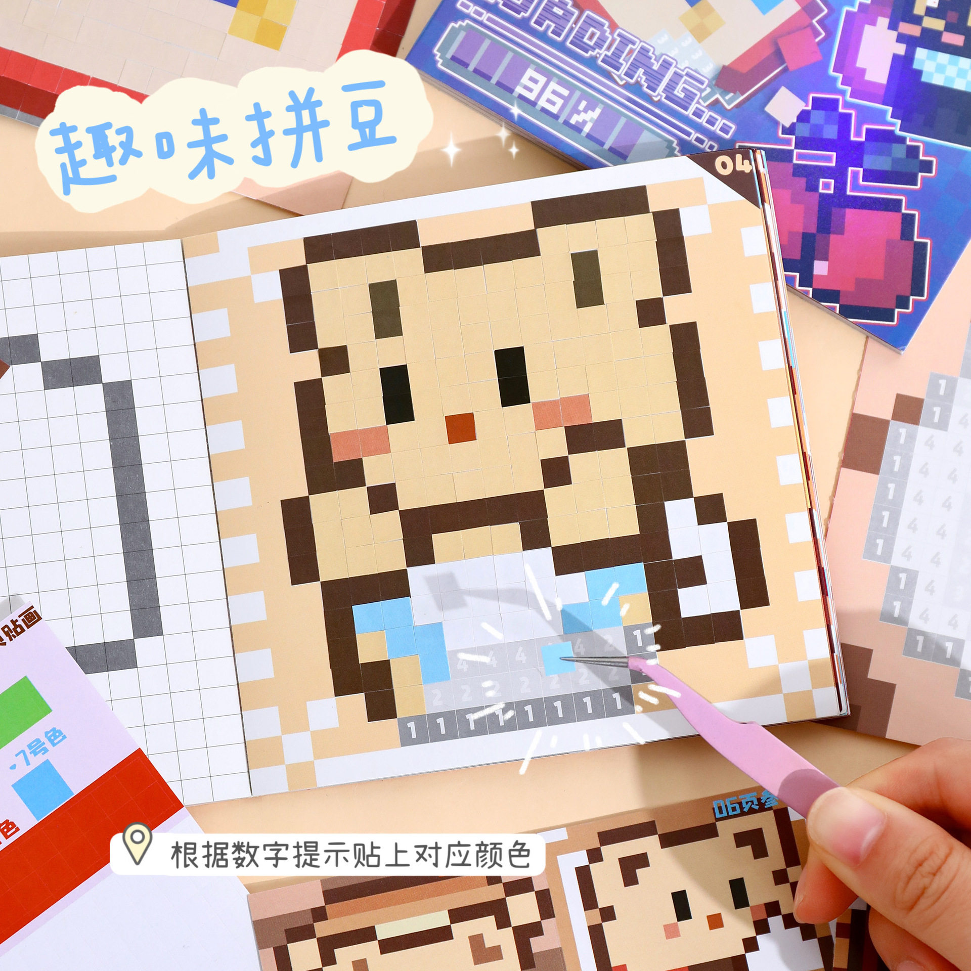 像素风拼豆贴纸本卡通可爱迷你豆豆本手工拼贴diy手帐装饰贴画趣味亲子互动桌面小游戏儿童益智玩具男女孩