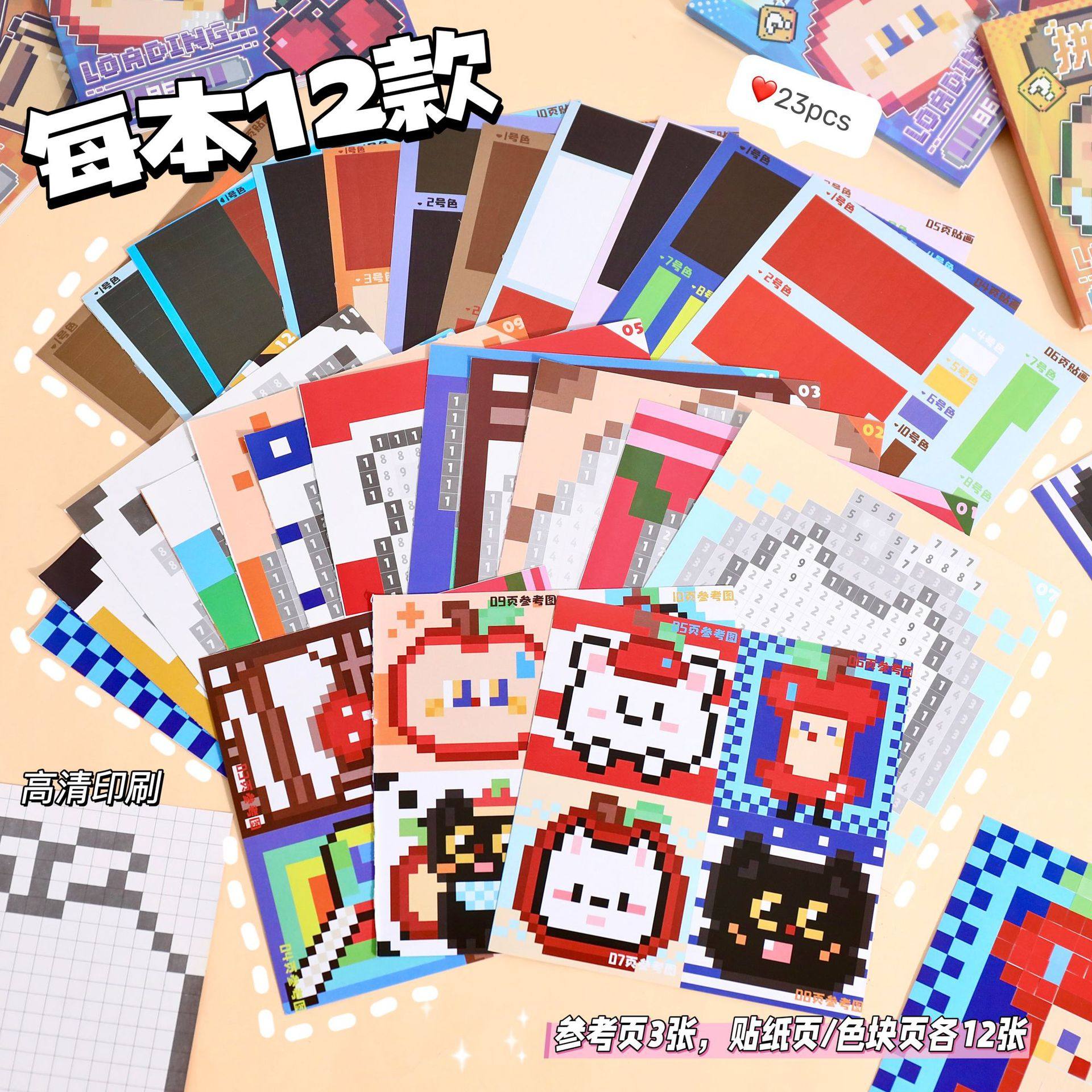 像素风拼豆贴纸本高颜值2D卡通马赛克手工册玩具手账装饰素材贴画