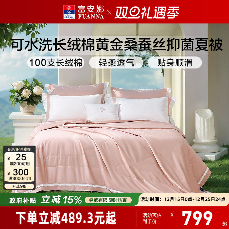 富安娜被子100%蚕丝被春秋被子母被二合一四季被芯冬被夏被空调被