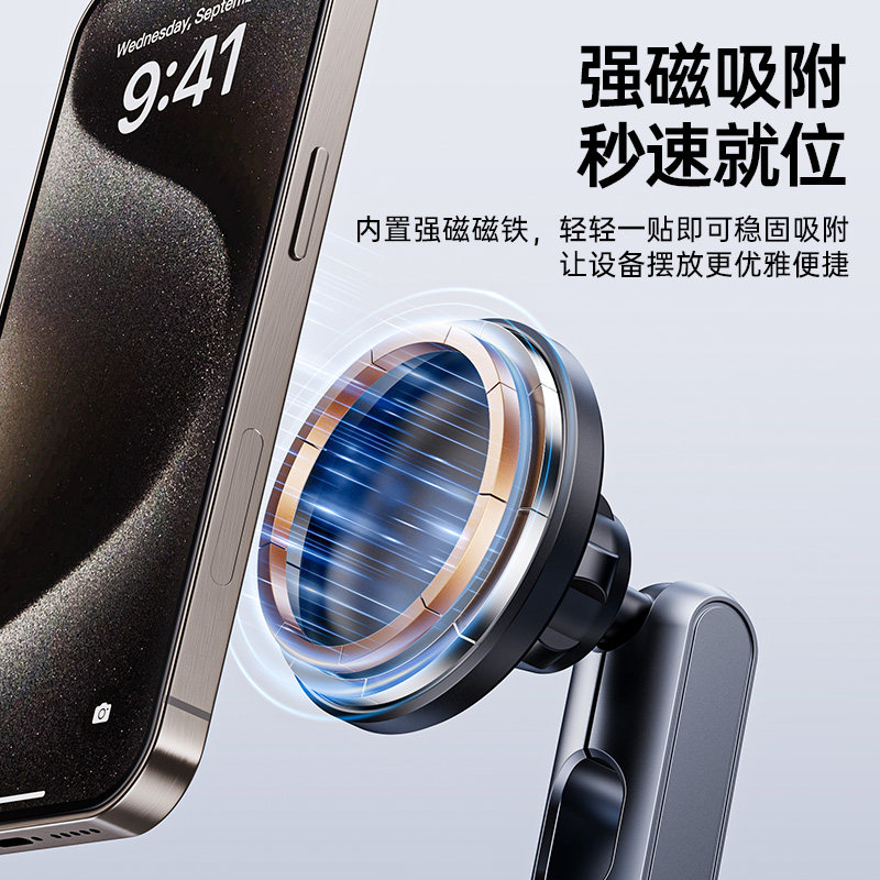 真空吸附磁吸车载手机支架2025新款吸盘车内导航手机架magsafe无线磁吸伸缩折叠便携架子墙壁通用神器