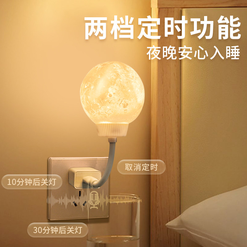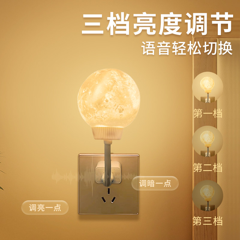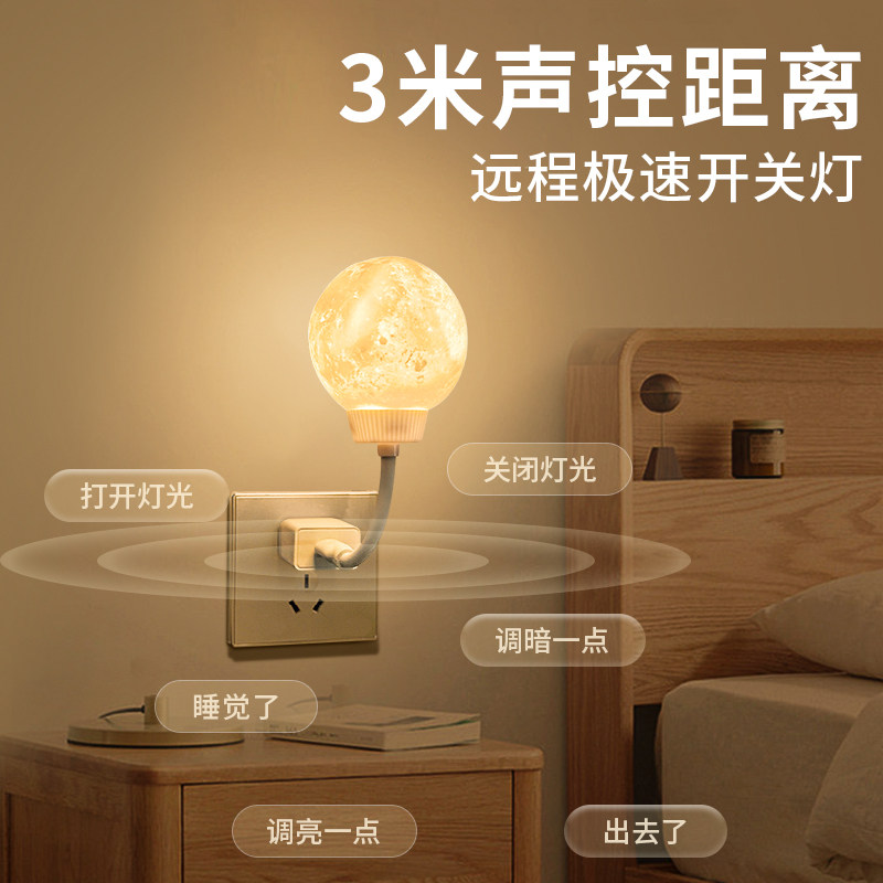 语音声控小夜灯智能USB灯插座宿舍暖光护眼灯控制卧室床头灯月亮