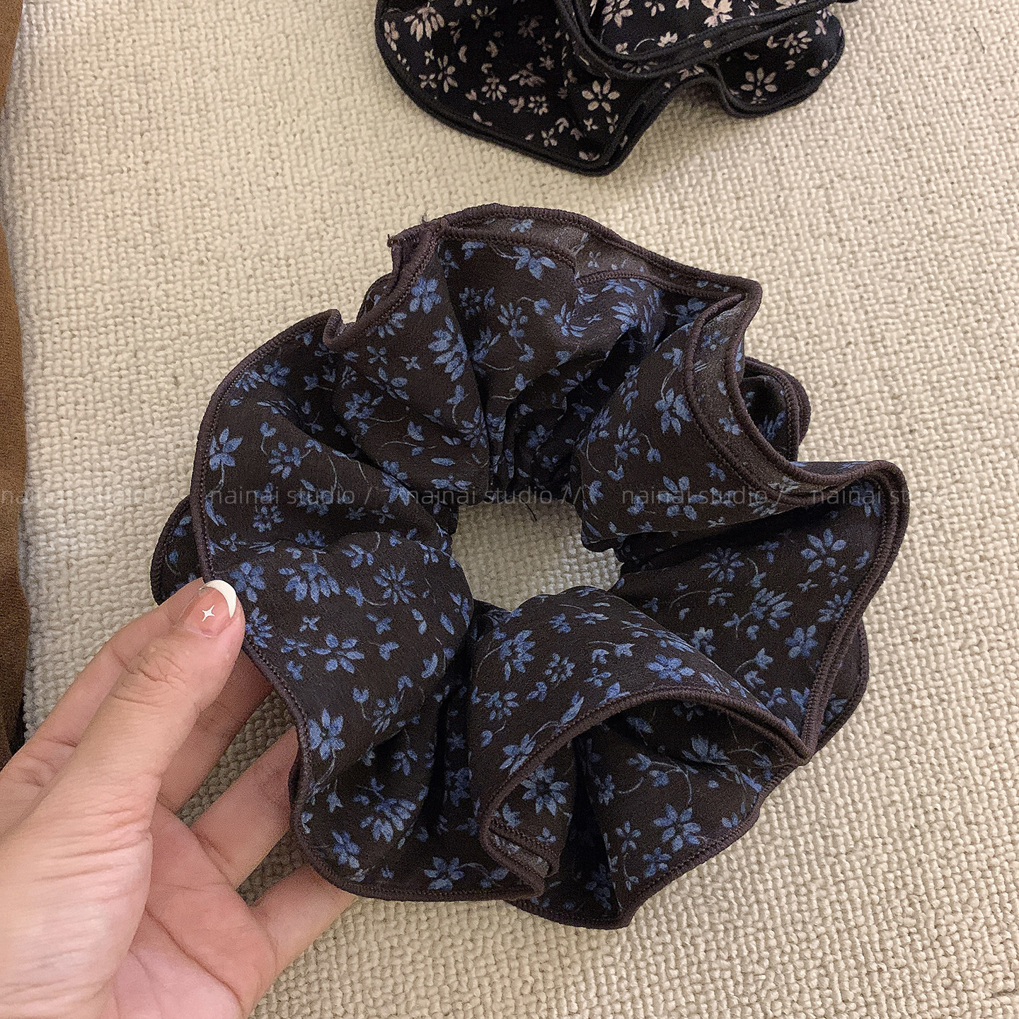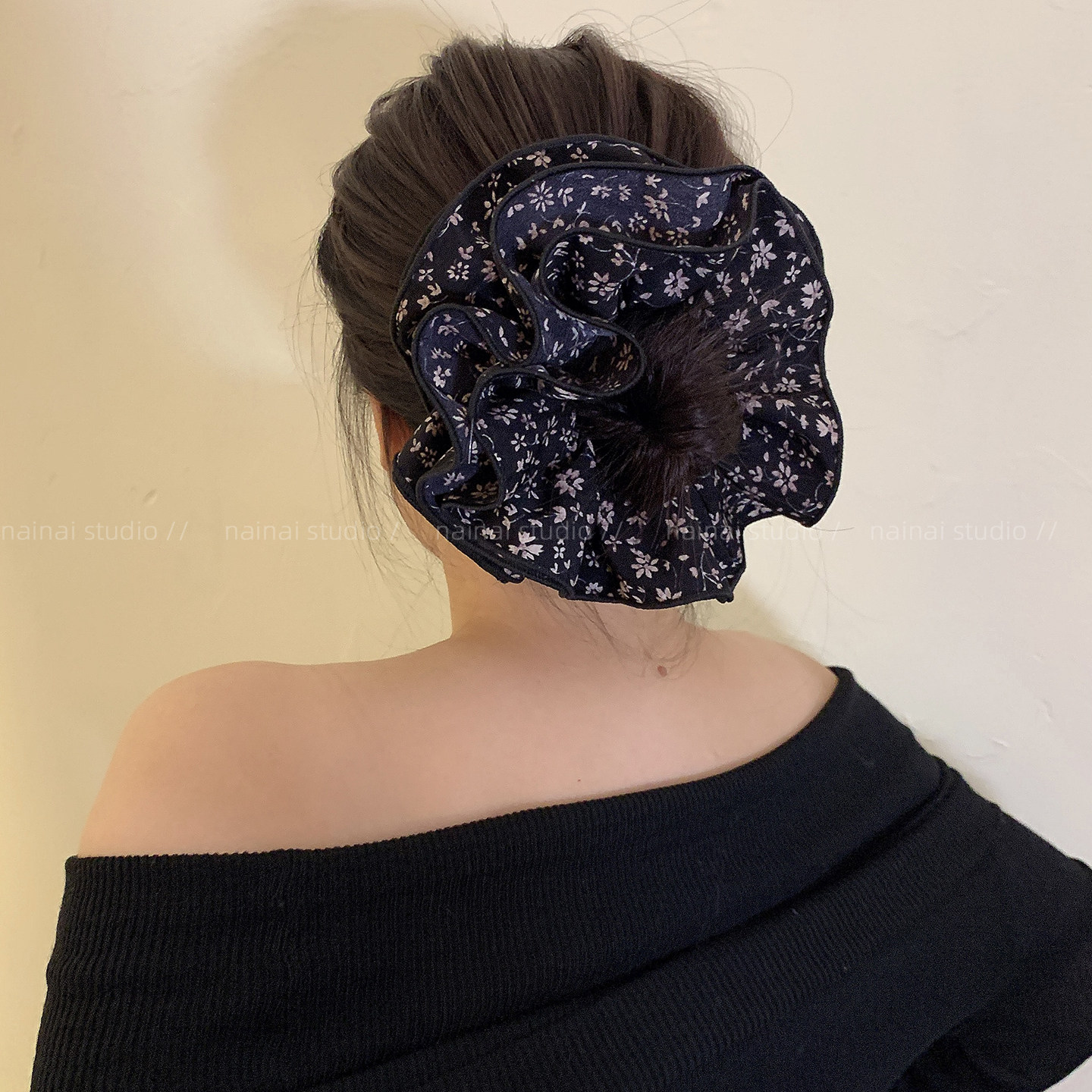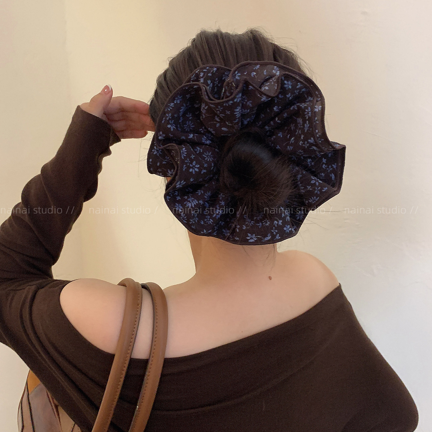 黑色小碎花大肠发圈~韩版ins风丸子头扎头发马尾发绳头绳发饰头饰