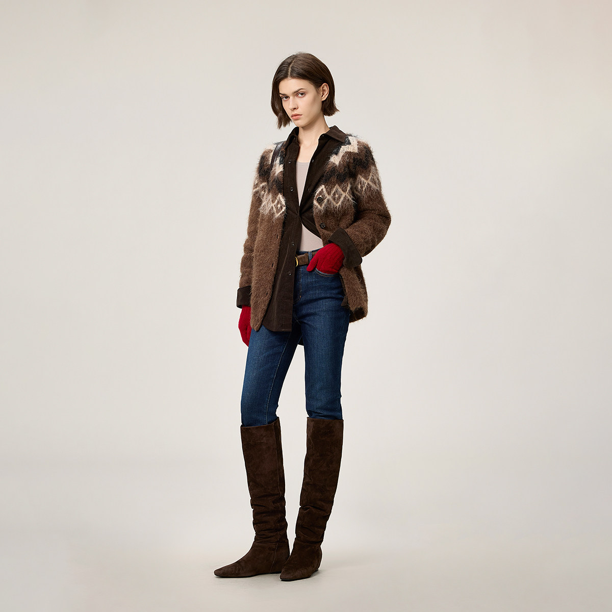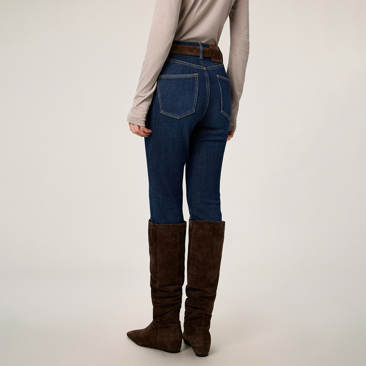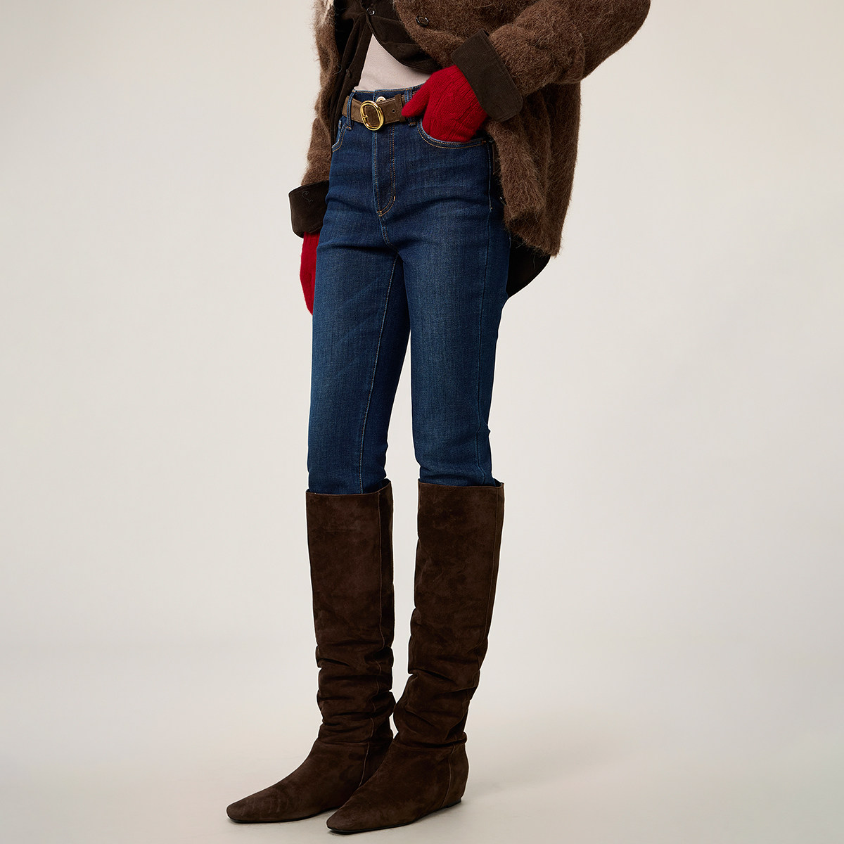【新品】OCHIRLY欧时力 加绒小脚牛仔长裤女铅笔裤修身蓝色2026春