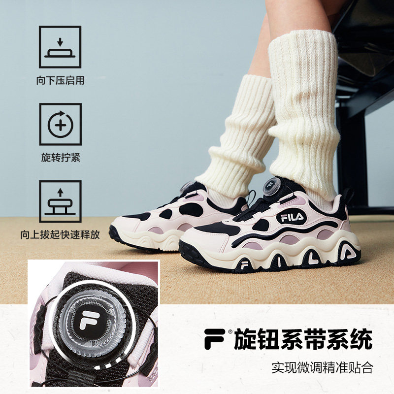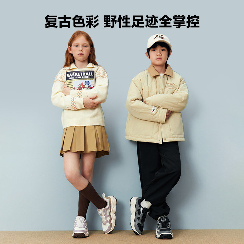 FILA斐乐儿童童鞋运动鞋子2025冬新款男女中大童跑鞋旋钮扣篮球鞋