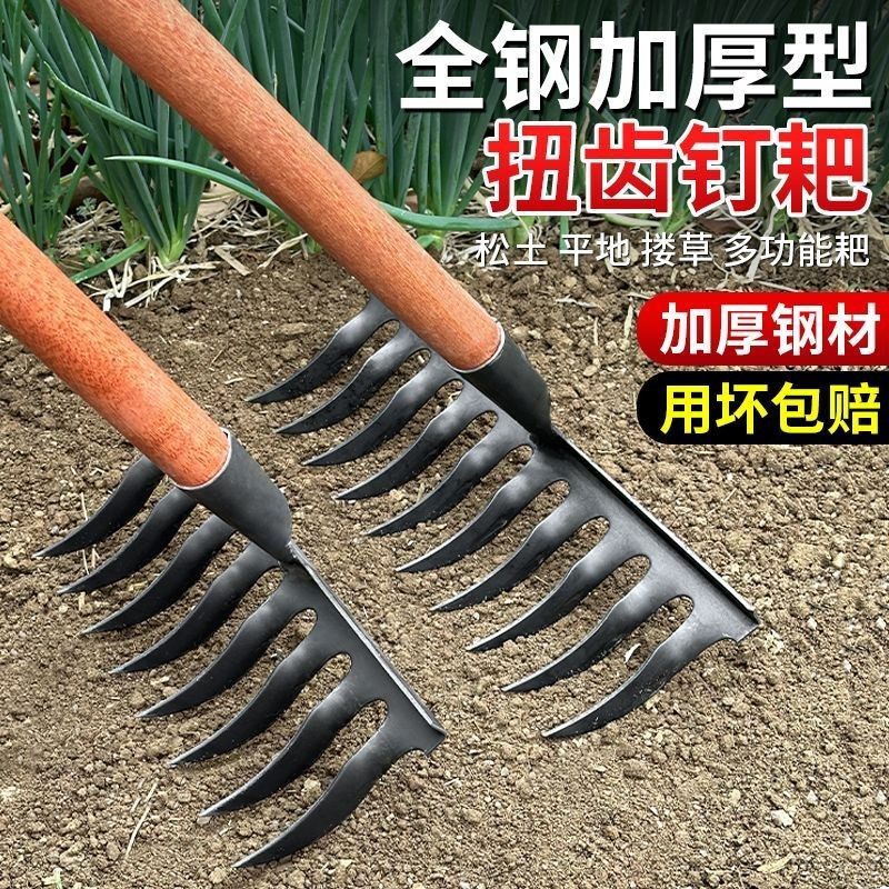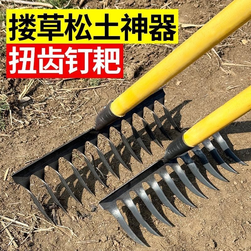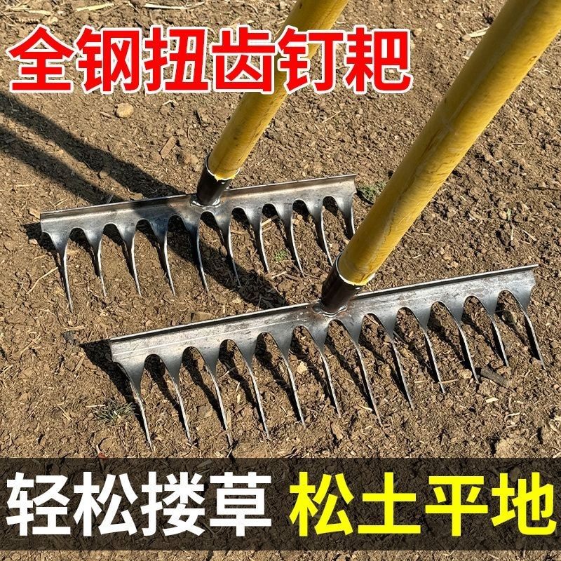农用螺旋钉耙种菜开荒锰钢结实多功能全钢钉耙松土翻地多功能耙子