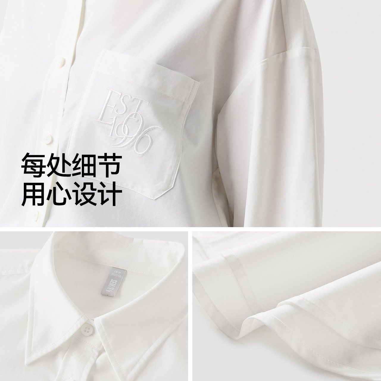 简约白色穿搭能手 立体刺绣耐看 易打理