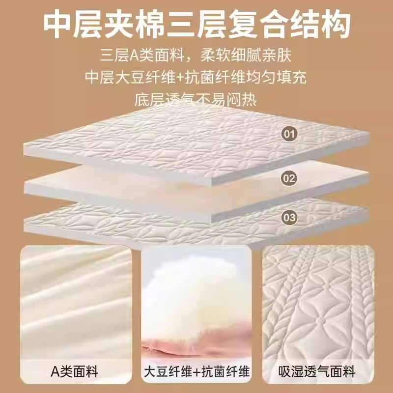 无印良品A类防水抗菌大豆夹棉床笠床罩隔尿保护罩全棉夹棉床单套