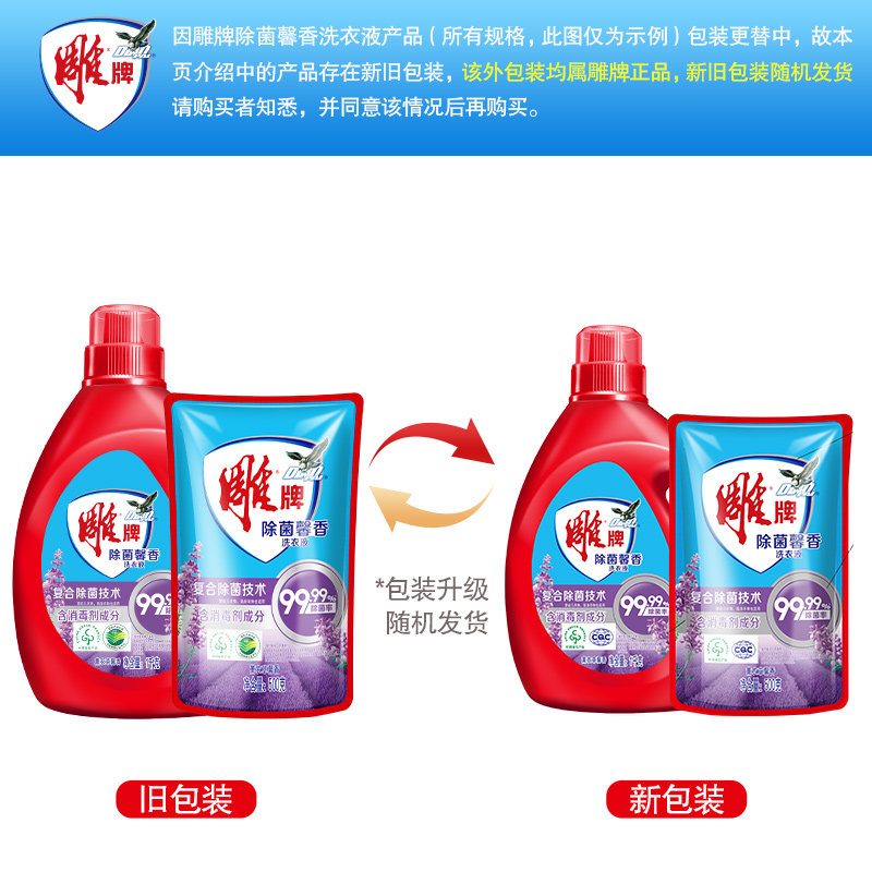 雕牌除菌馨香洗衣液4kg*1套香味持久去污可洗贴身衣物8斤组合装