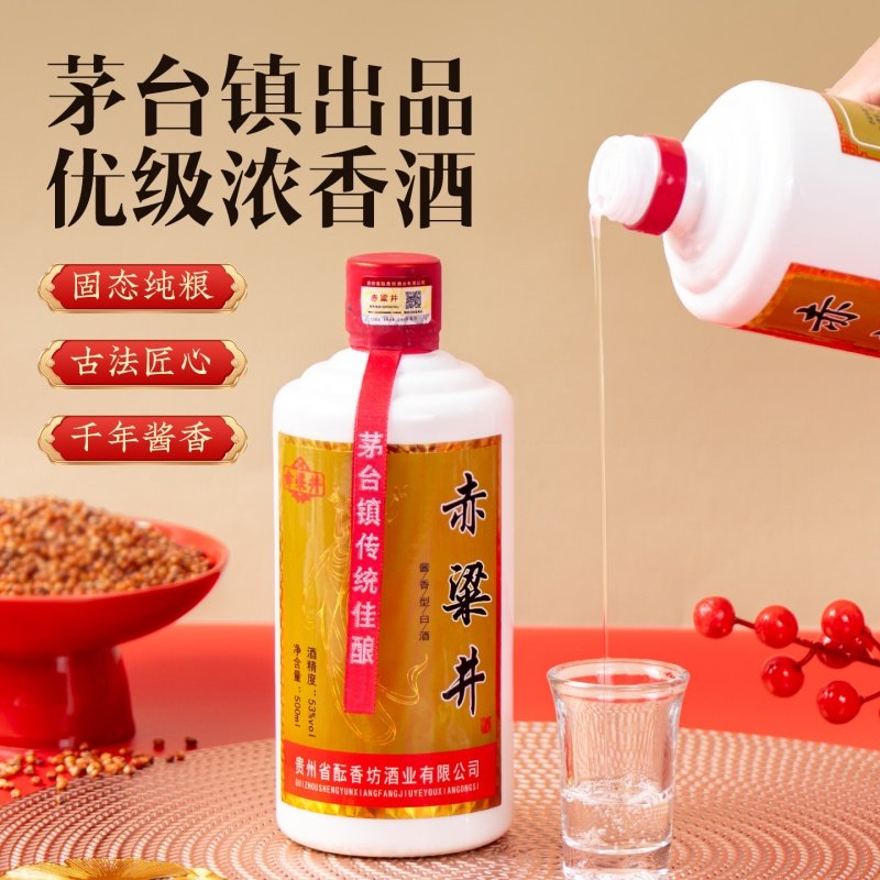 赤粱井贵州酱香型白酒53度纯粮食酒正品官方旗舰店整箱500ml*6瓶