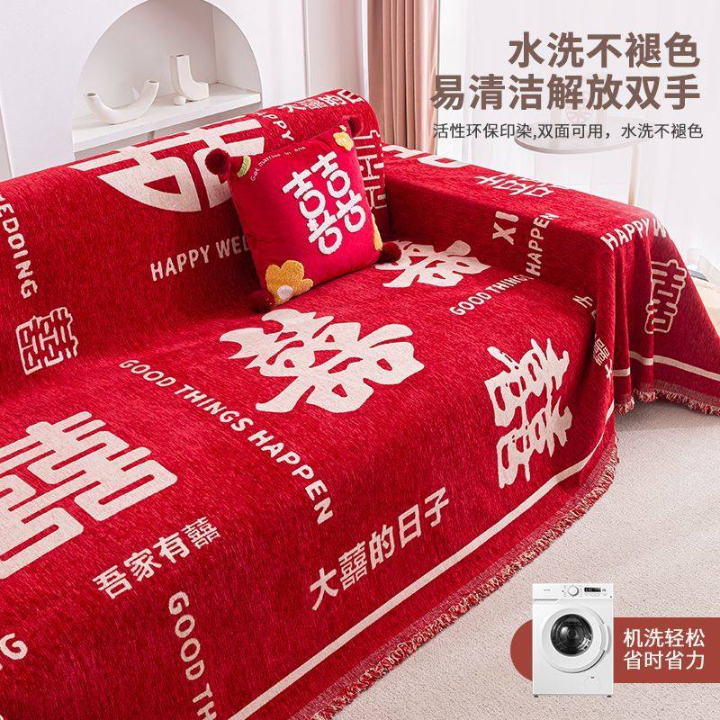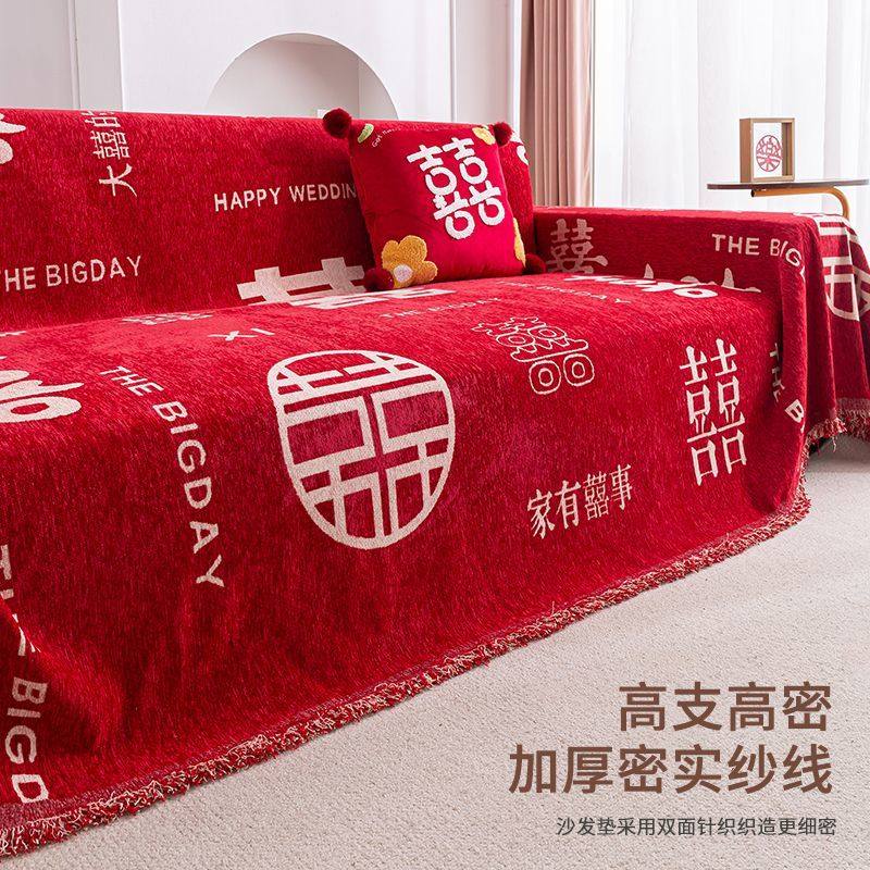 四季通用全包结婚盖布巾中式大红色沙发套罩盖巾喜庆沙发盖毯防滑