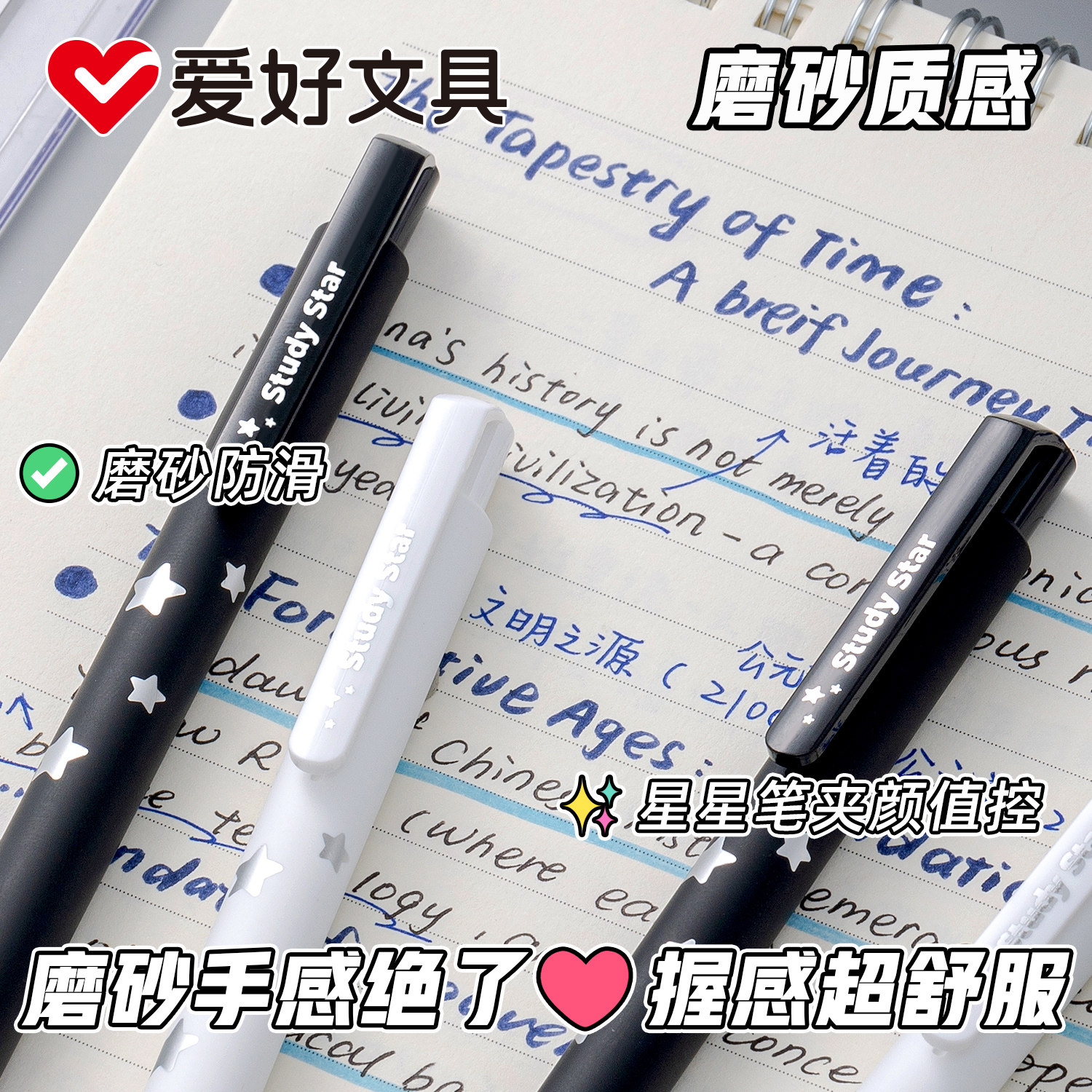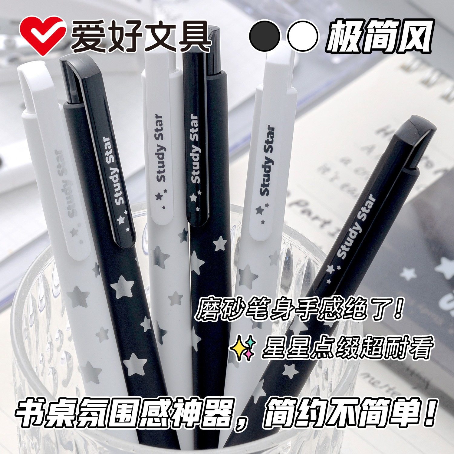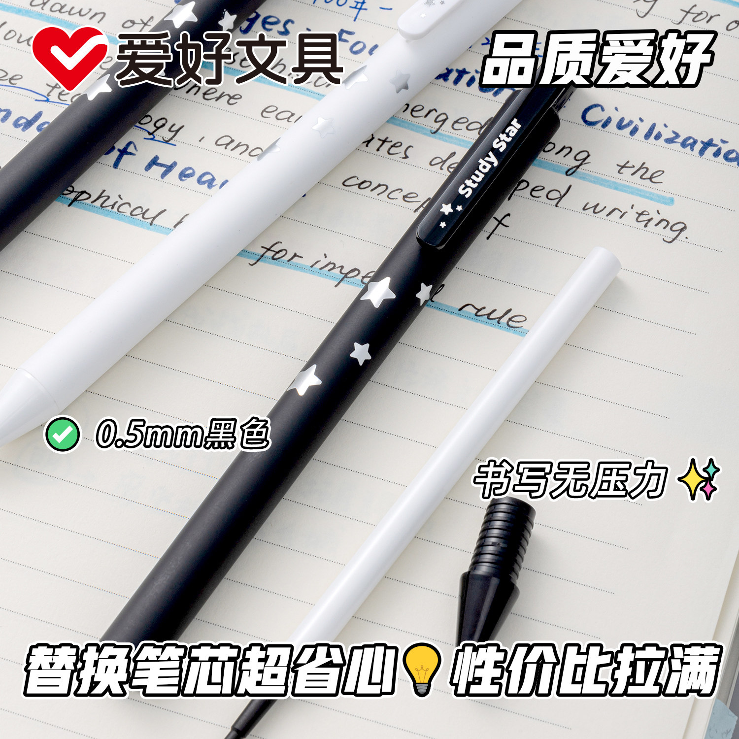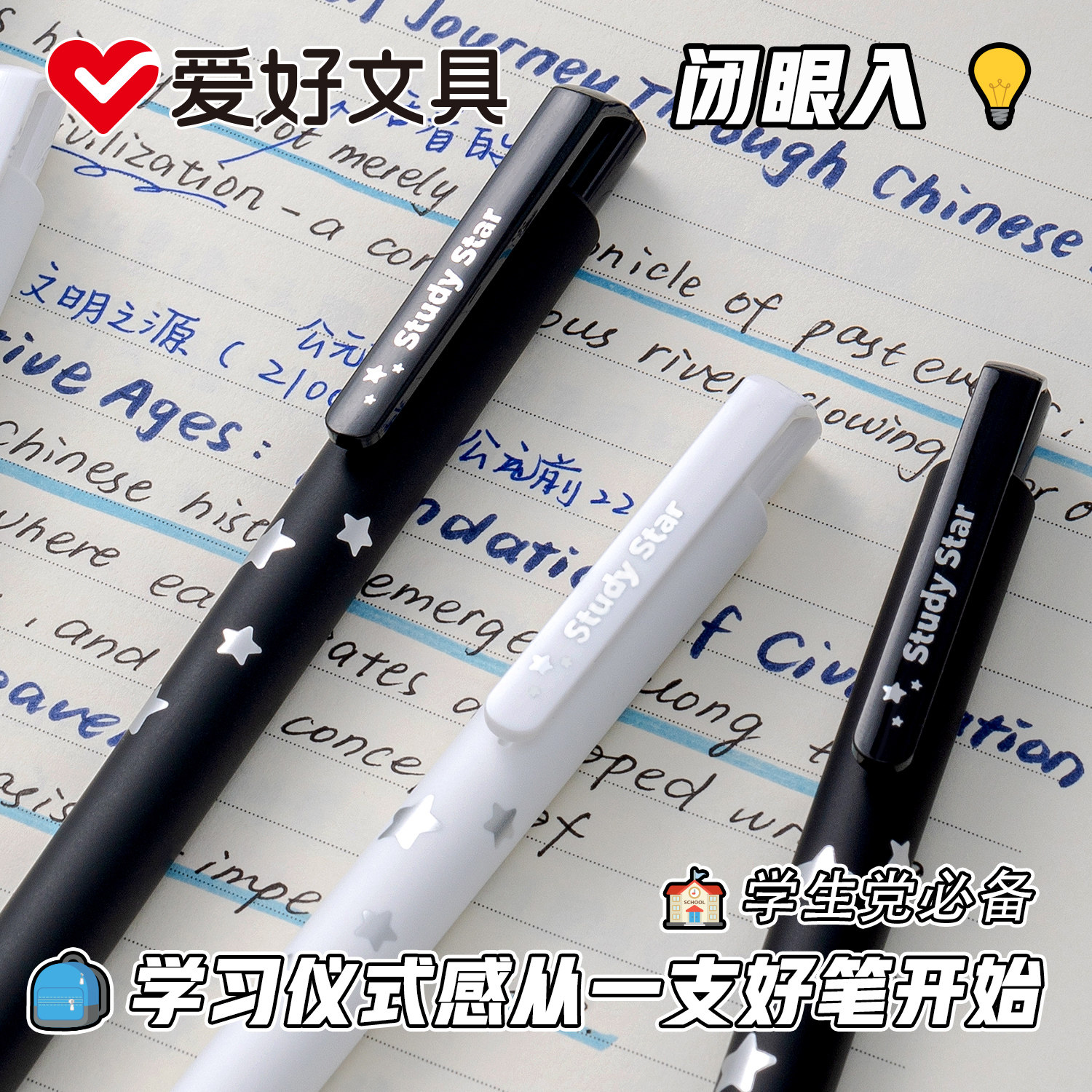 爱好学习之星按动中性笔ST尖刷题笔速干顺滑学生用黑色中性笔高颜值ins风简约按动笔考试用0.5mm中性笔签字笔