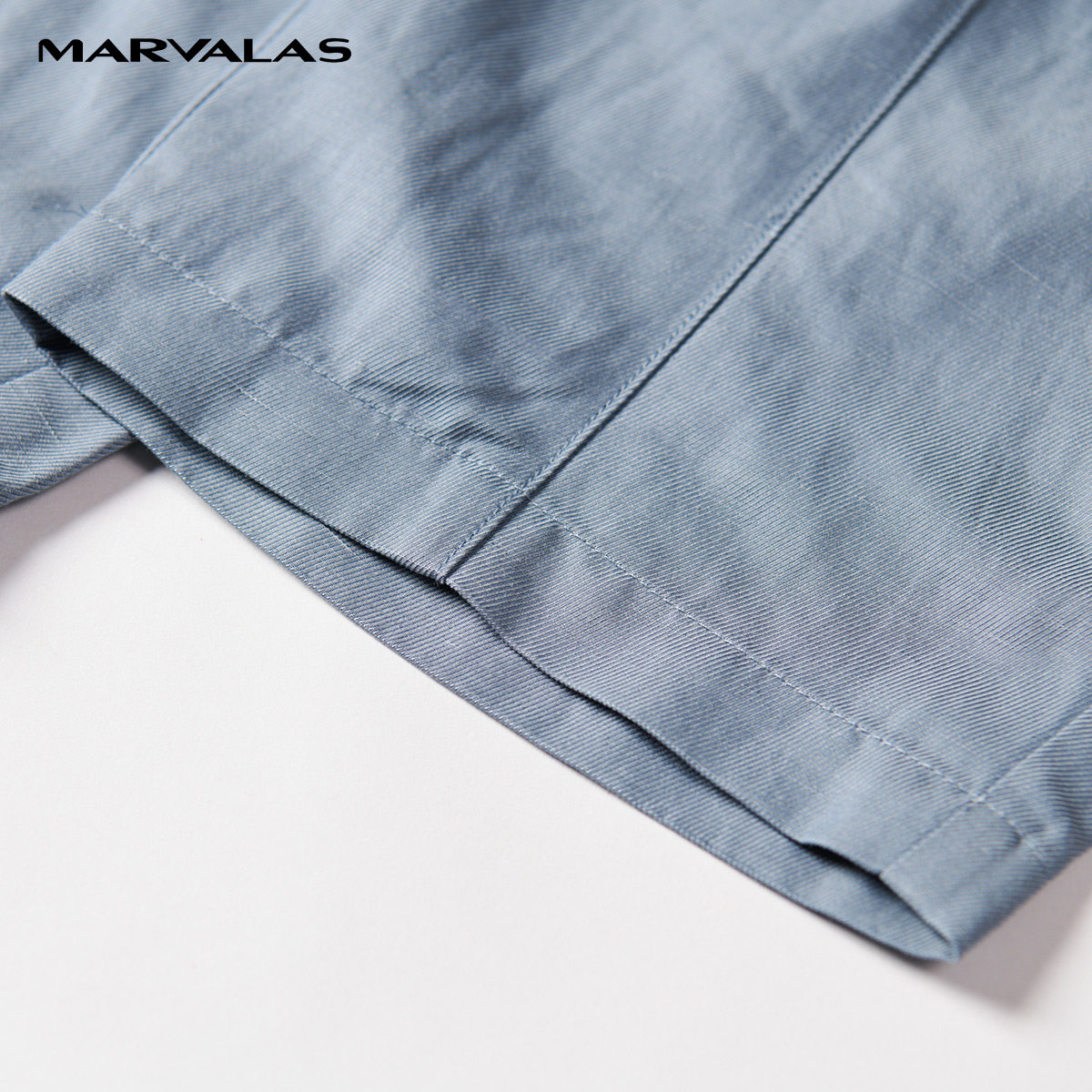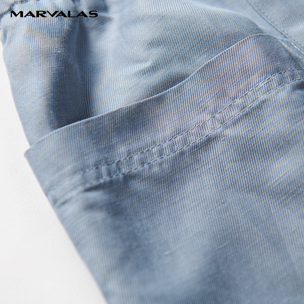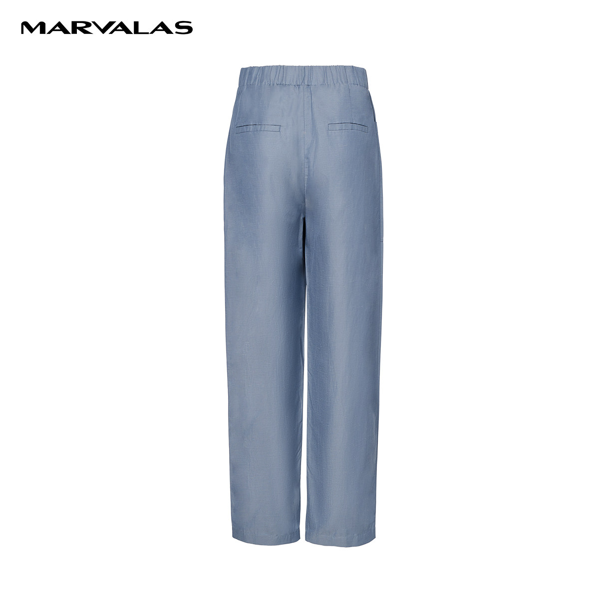 曼德诗蓝色哈伦裤女2025春新款高腰显瘦宽松垂感简约通勤休闲长裤
