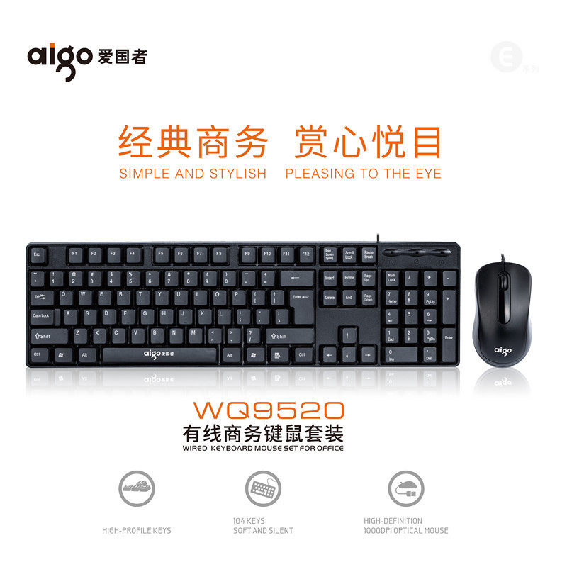 爱国者WQ9520有线商务办公键盘鼠标套装USB笔记本台式电脑家通用