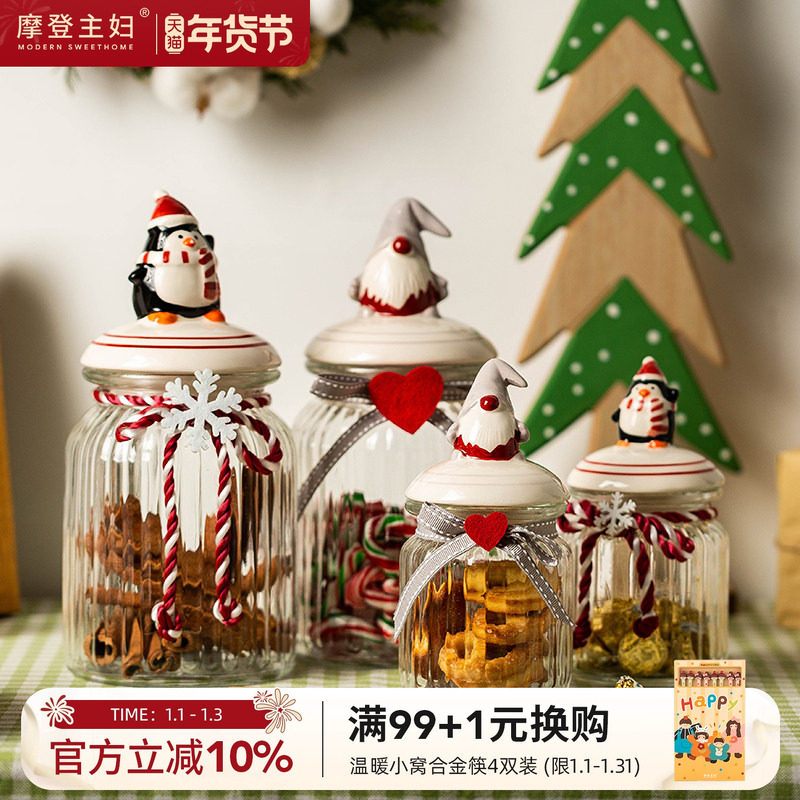 摩登主妇圣诞节小礼物糖果罐食品级玻璃瓶密封罐子零食饼干收纳盒