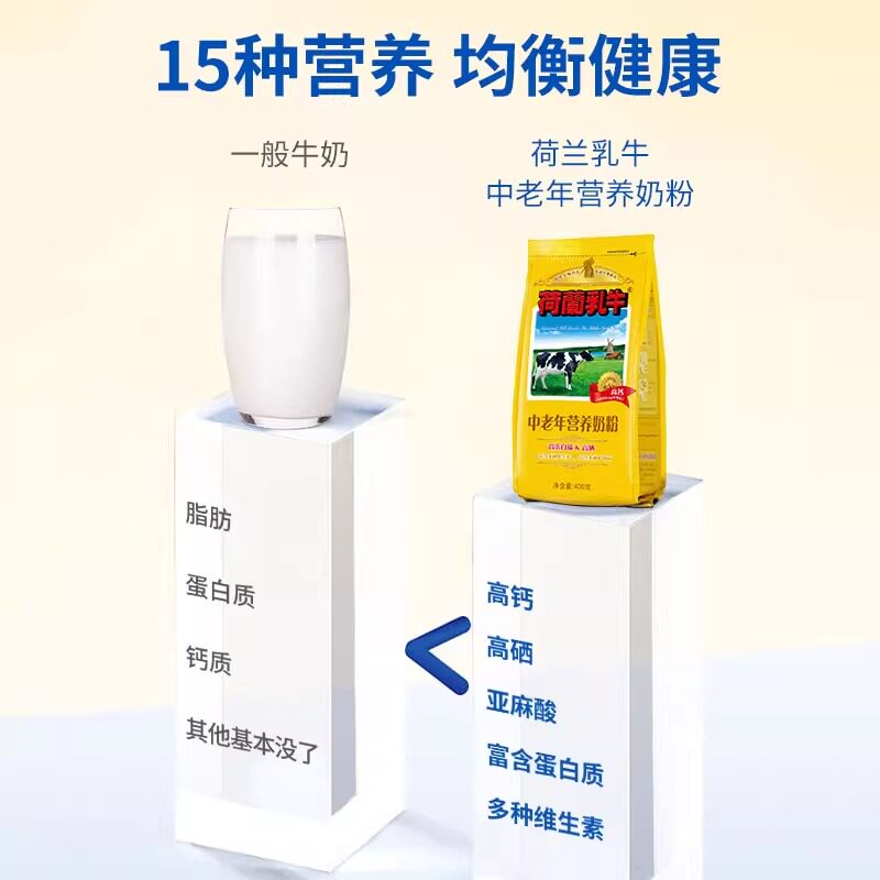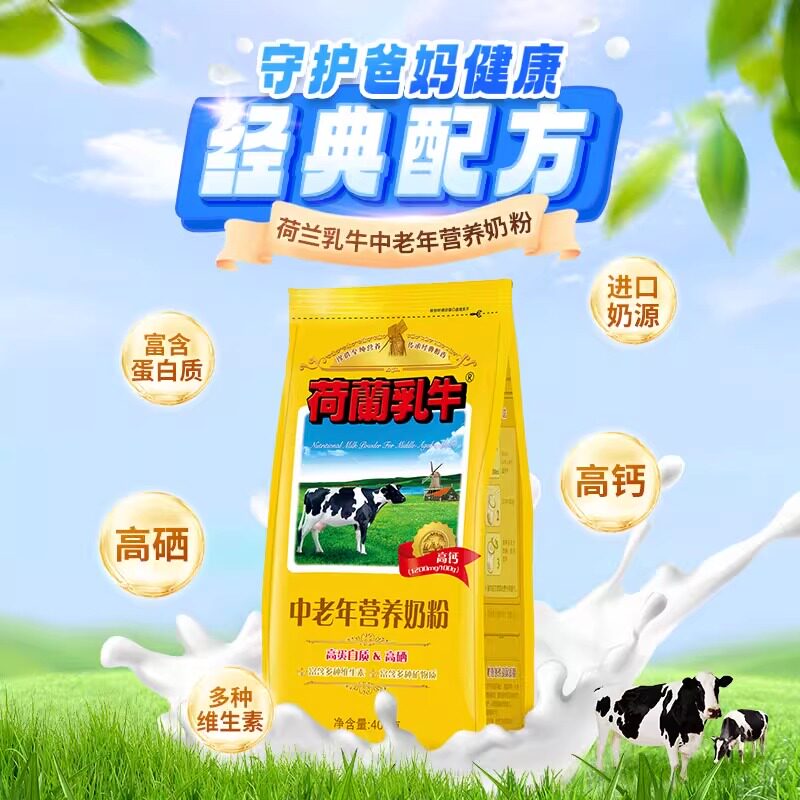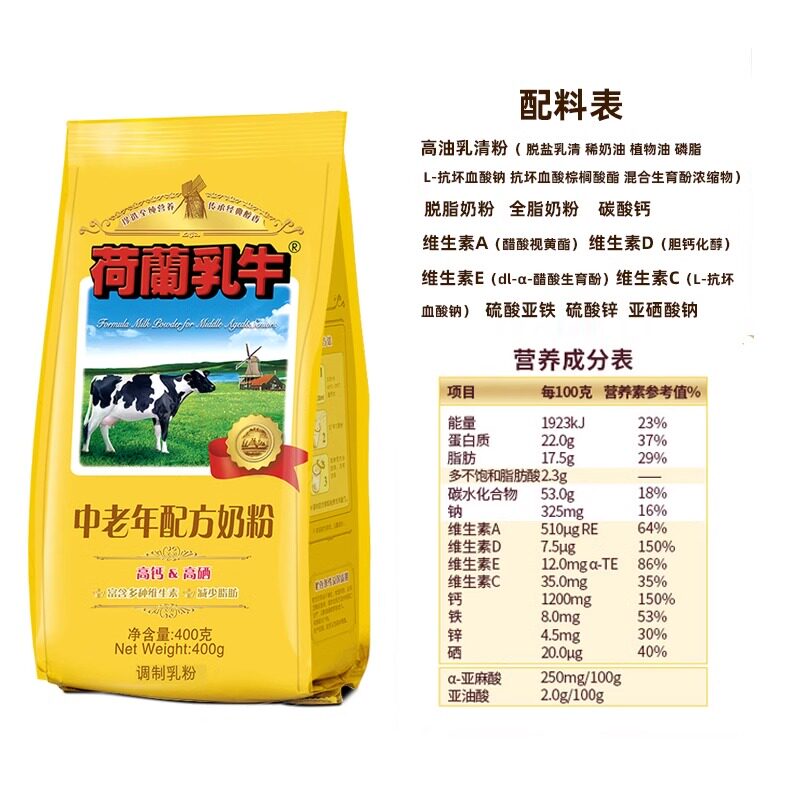 荷兰乳牛中老年营养奶粉400g*2袋高钙高硒配方添加亚油酸成人奶粉