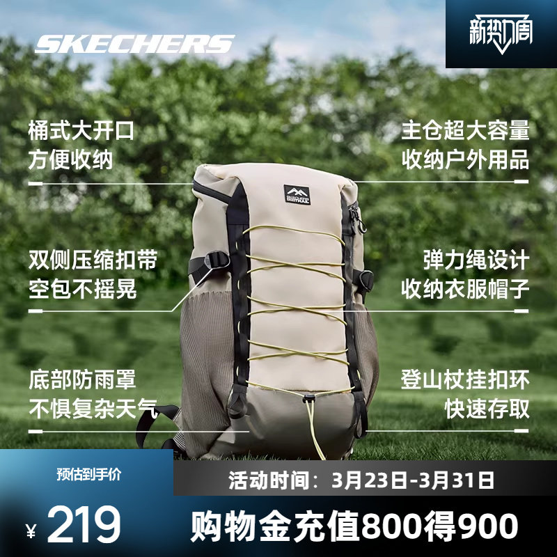 斯凯奇户外包男女款多功能双肩包防雨大容量桶式登山徒步轻便背包