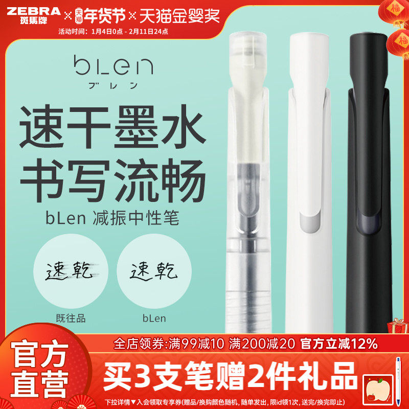 日本ZEBRA斑马旗舰店官网JJZ66中性笔bLen减振笔低重心高颜值ins风限定按动黑色刷题速干签字笔替芯学生文具