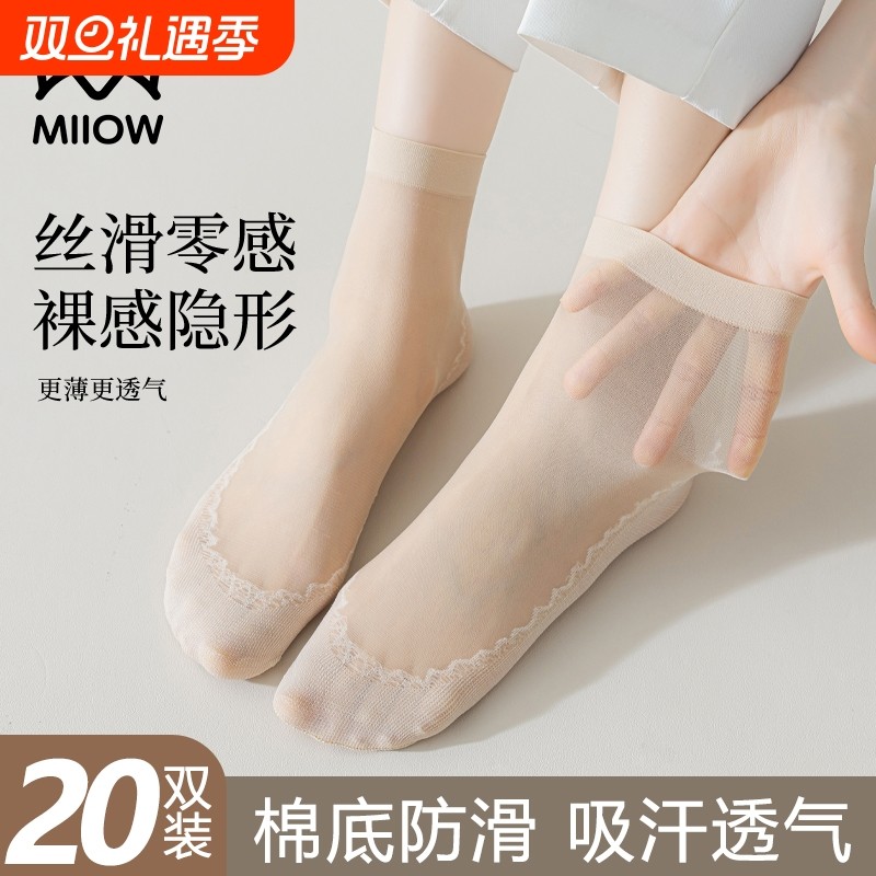 猫人丝袜女短袜薄款防勾丝防滑纯棉底肉色夏季隐形水晶袜自然短筒